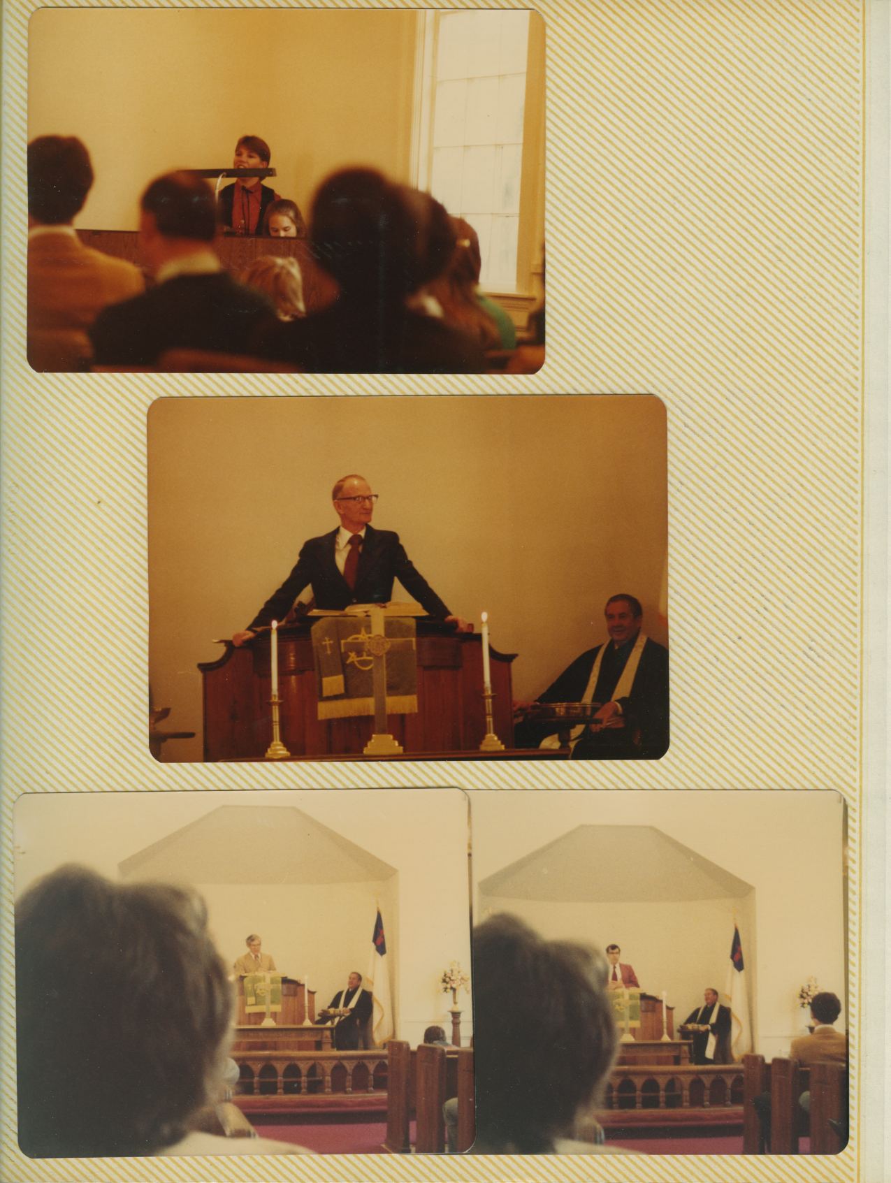The pictures from each page of the album are grouped below following an image of the album page. The album pages appear much as they currently do in the albums. Most of the individual color photos have been modified in an attempt to restore the original coloring of the photo. Click on an image below to view a larger version of the album page or picture. Some album pages have text that describes the occasion and/or date of the photos. Bethel Photo Album "B"