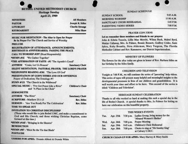 Bulletin for the Homecoming Service