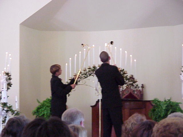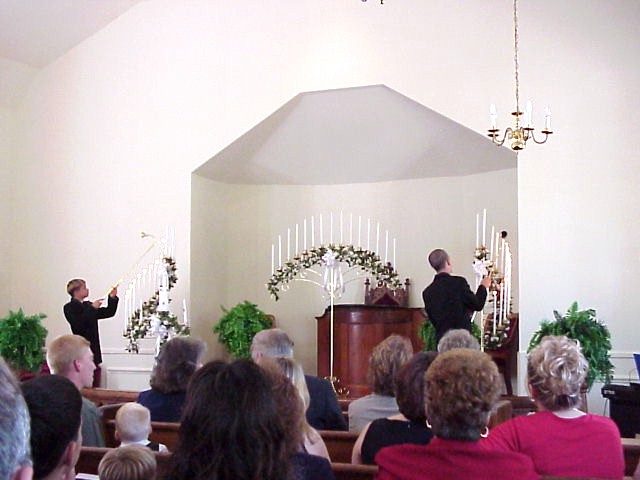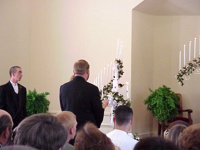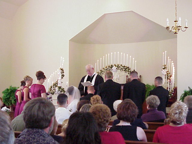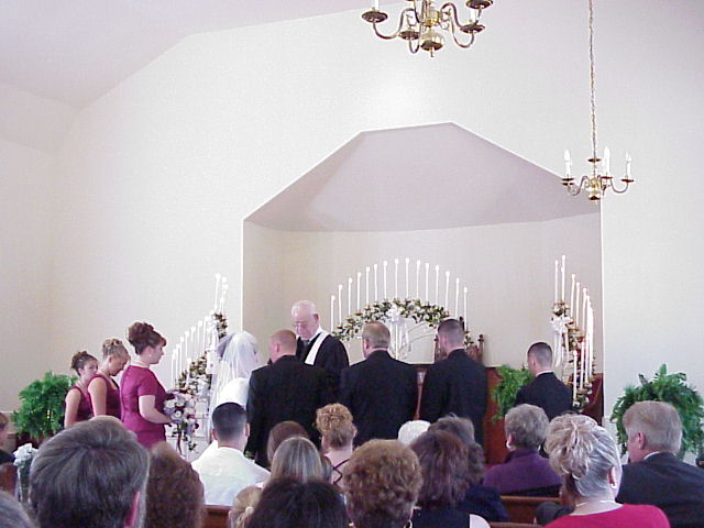 This page provides access to more than 50 digital photos that were taken at the wedding of Glenn Abbott and Amanda Odem at Bethel on October 29, 2000. Clicking on a small image opens a larger view of the photo. Click on a small photo to view the larger photo. Clicking on the hilited/underscored title at the top of this index page will begin a "slide show" in which each of the photos will be shown for 3 seconds.