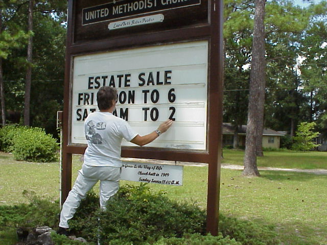 Preparing the Sign for Edna's Estate Sale