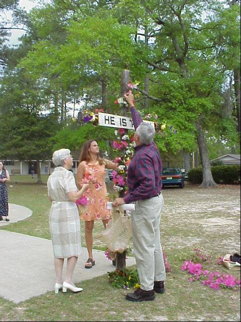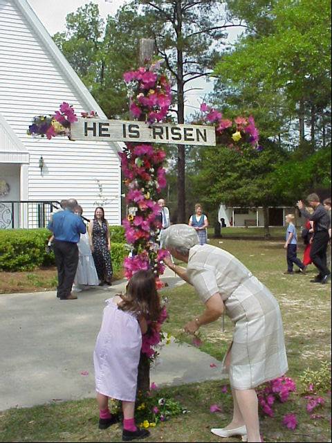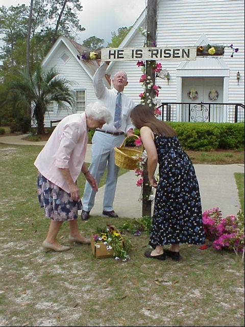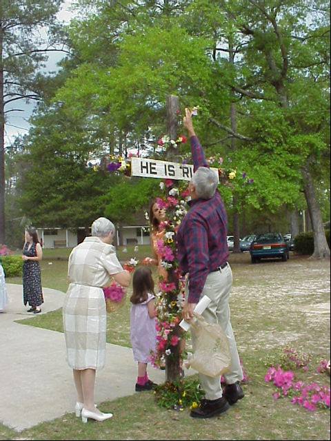 Digital Church Photos Easter Sunday March 31, 2002 Sunrise Service The Flowered Cross Easter Service An Easter Cantata by music director Greg Tulenko Family Pictures at the Flowered Cross After Service, Fellowship, Dinner... and Easter Egg Hunt