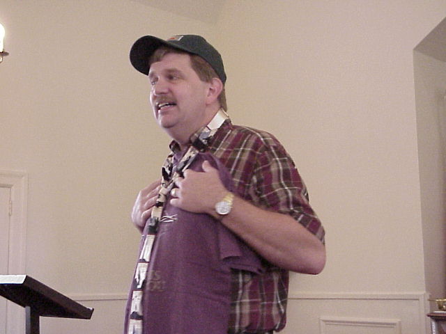 Digital Church Photos Sunday August 4, 2002 Rev. Steven Riddle "in costume" Carter Singletary and David Zody take a ride in the "Mule" after the service