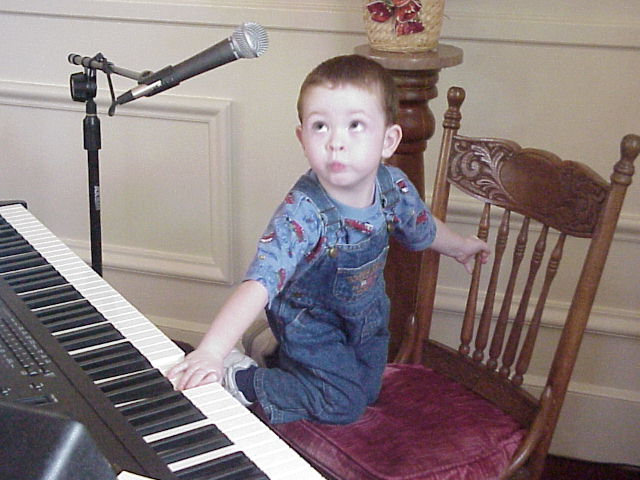 Digital Church Photos Sunday October 20, 2002 Pastor Steven Riddle gives the children's talk David Zody "practices" after the service