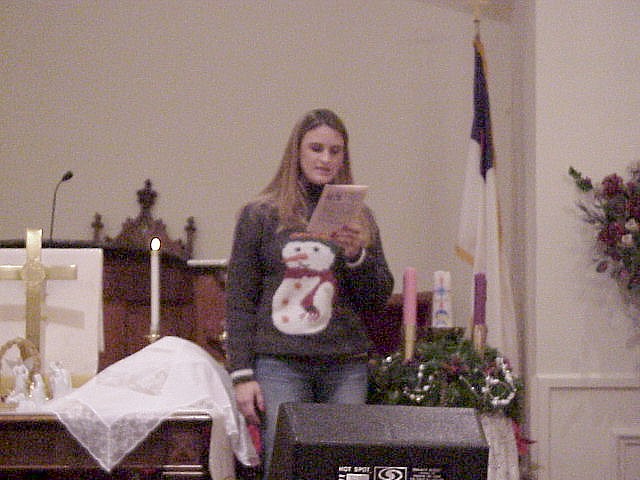 Digital Church Photos Tuesday December 24, 2002 Sara Holton lights the Christ Candle for Christmas Eve
