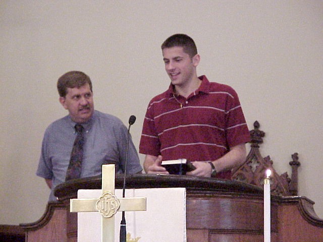 Digital Church Photos Sunday June 1, 2003 Recognizing graduates: Robert Brown, Anna Hosig, Lauren Hayman and Jonathon Wright Max West speaks for the Gideons A Good-Looking Group The reception for the graduates in the fellowship hall