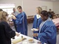 Recognizing graduates: Robert Brown, Anna Hosig, Lauren Hayman and Jonathon Wright Max West speaks for the Gideons A Good-Looking Group The reception for the graduates in the fellowship hall