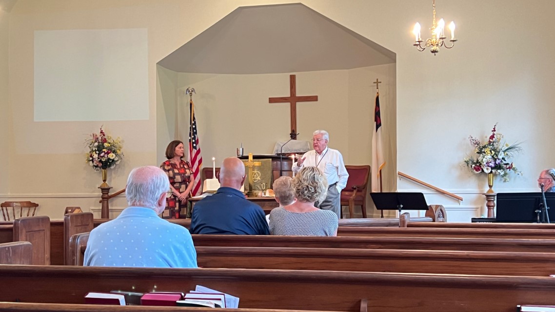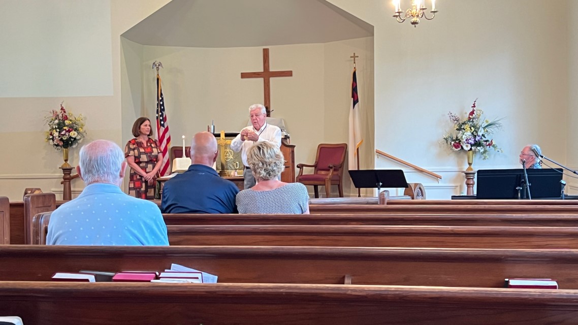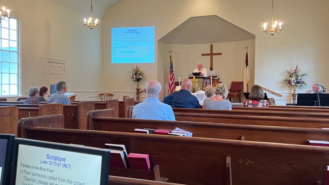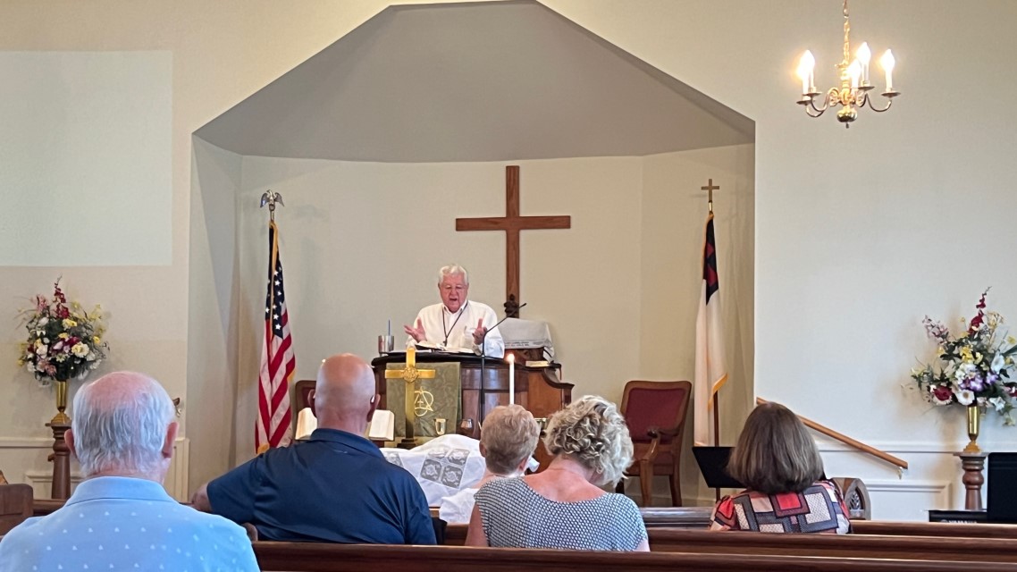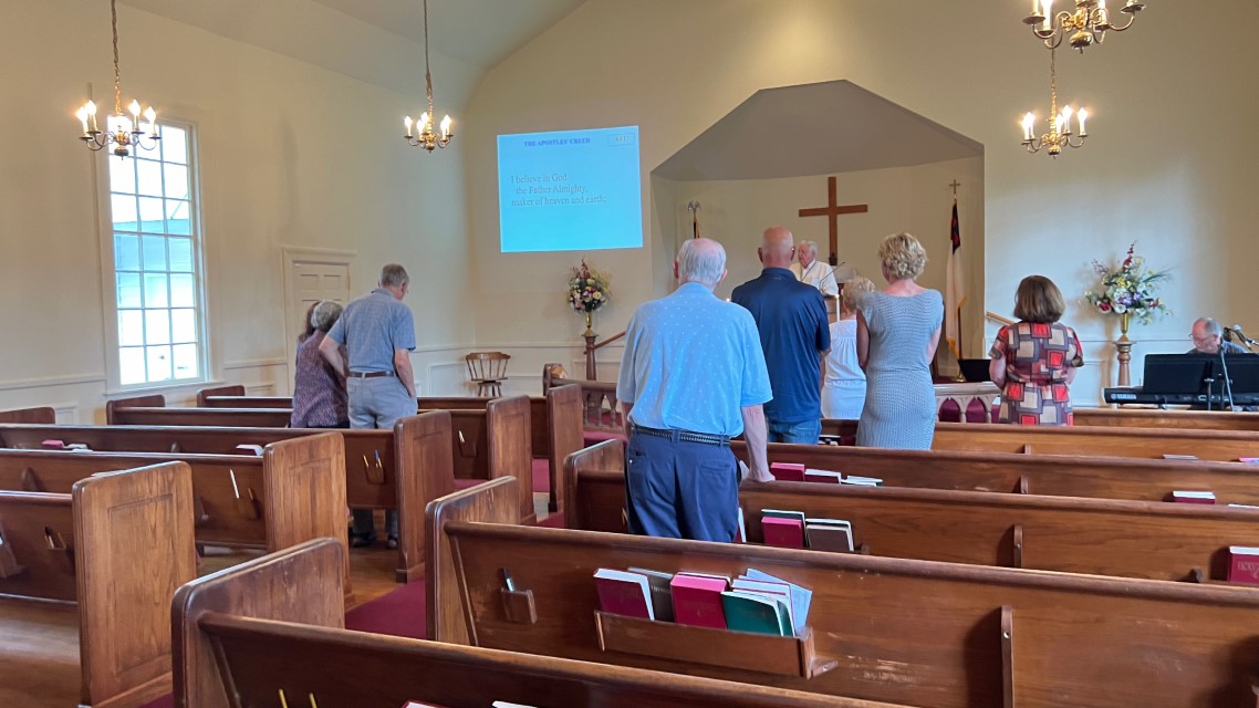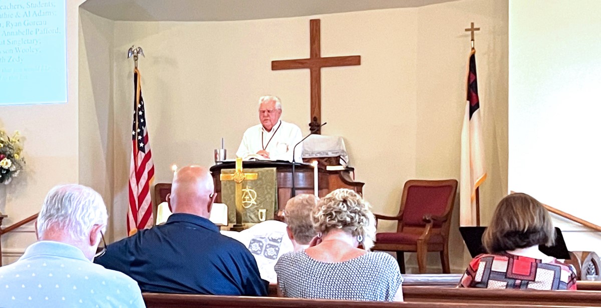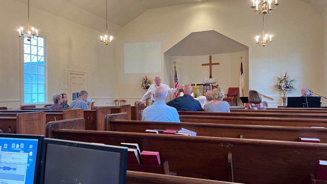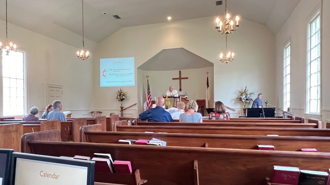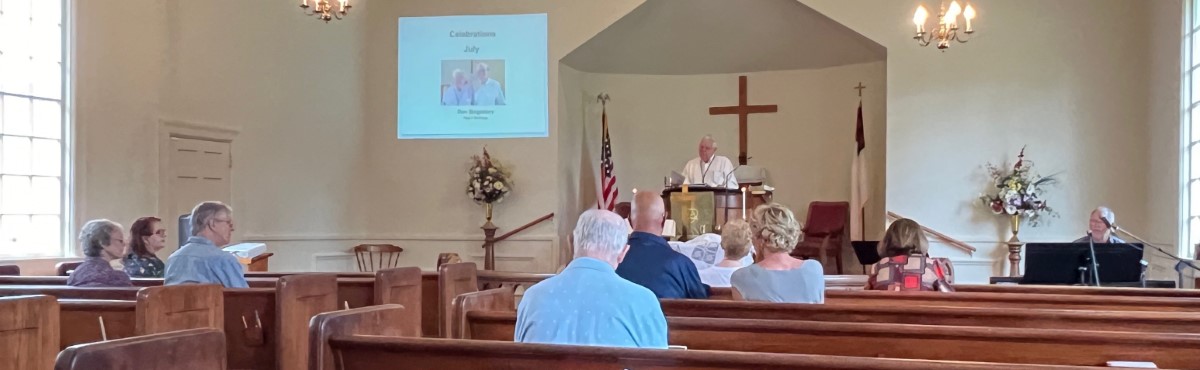 The service today began and ended under cloudy skies with a period of strong showers, thunder, lightning and two brief intervals of power loss during the service. As a result, the surviving recording of the service begins near the end of the time for prayer concerns. On this page, I've used recordings for the online service in place of ones from the church service that were lost.