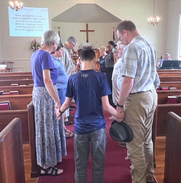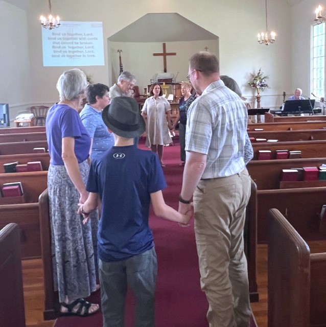 Gather in the center aisle....hold hands..."