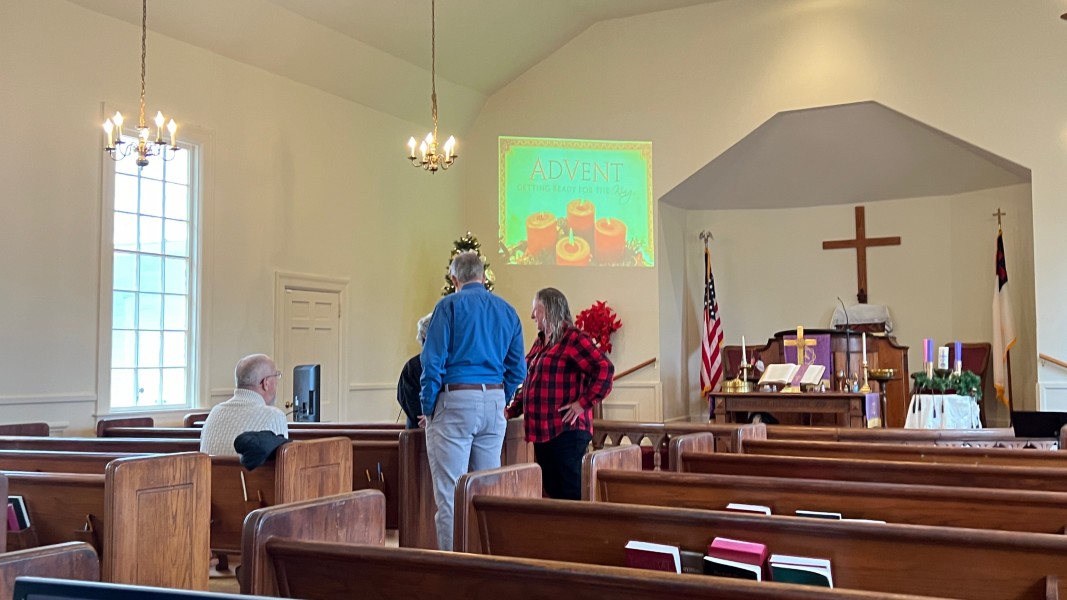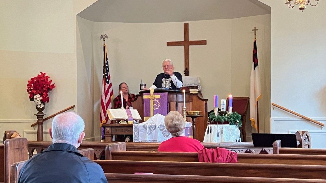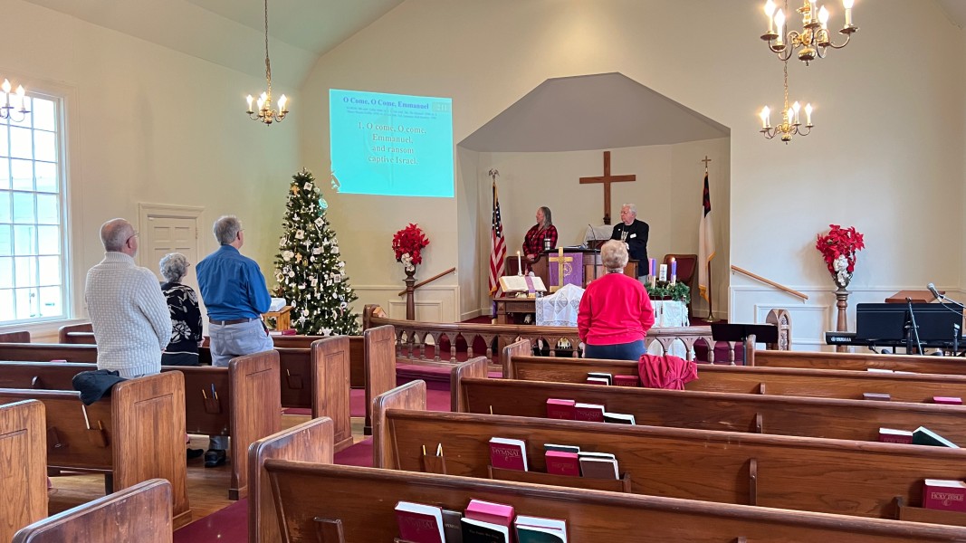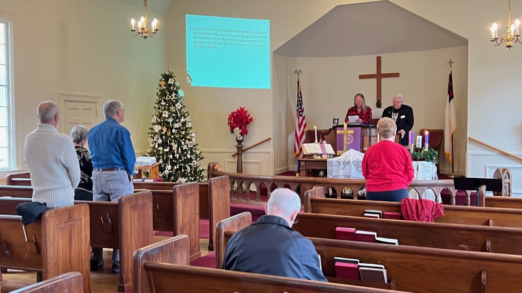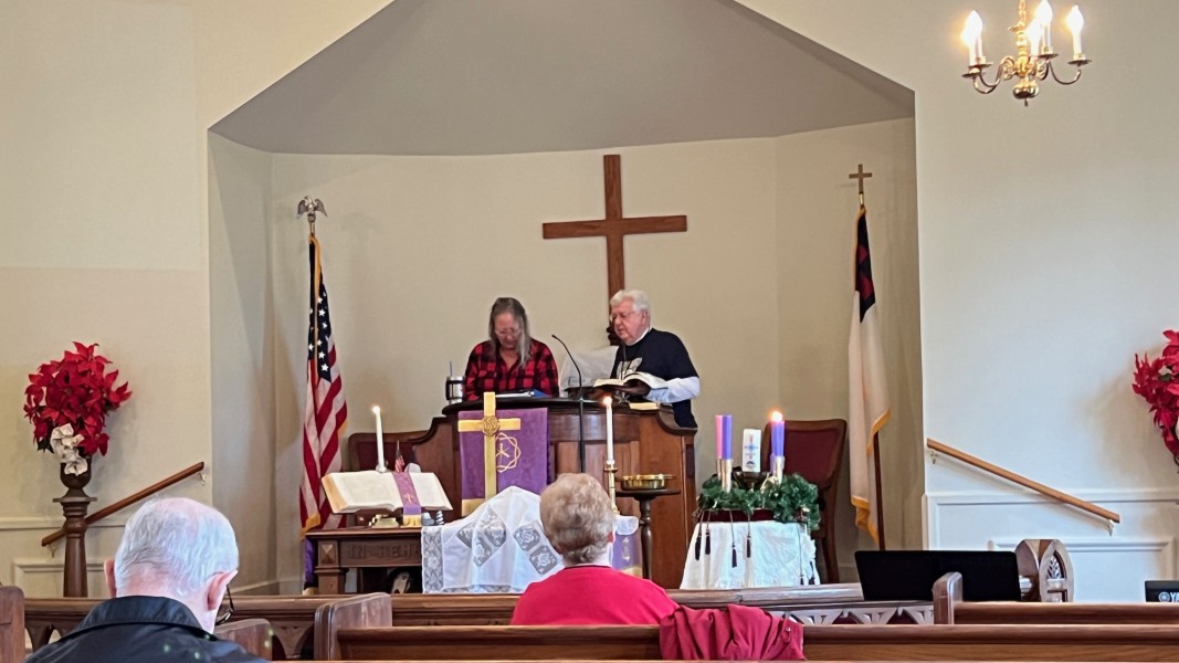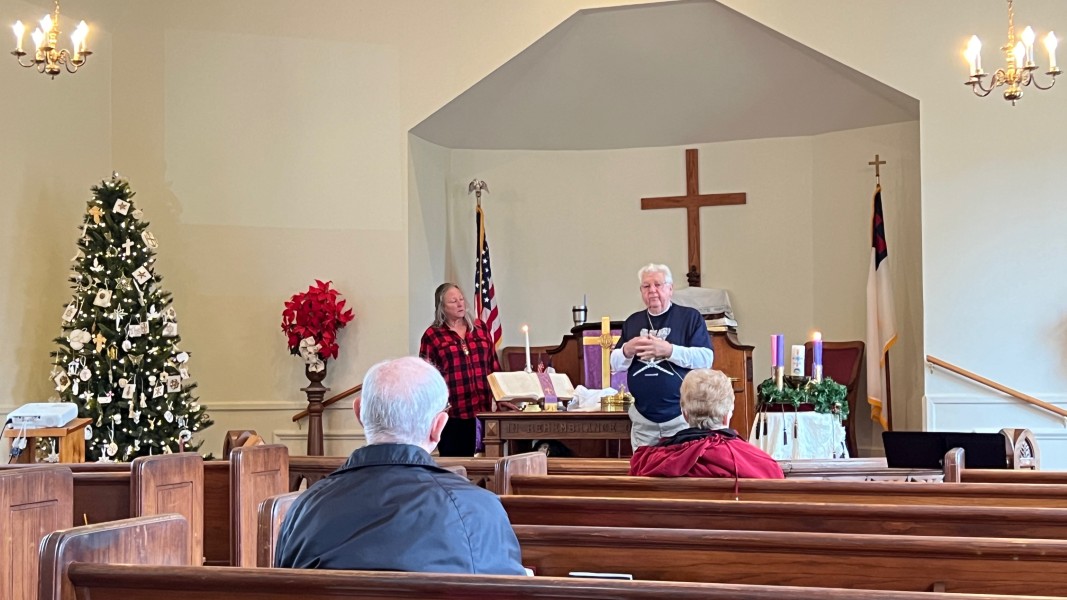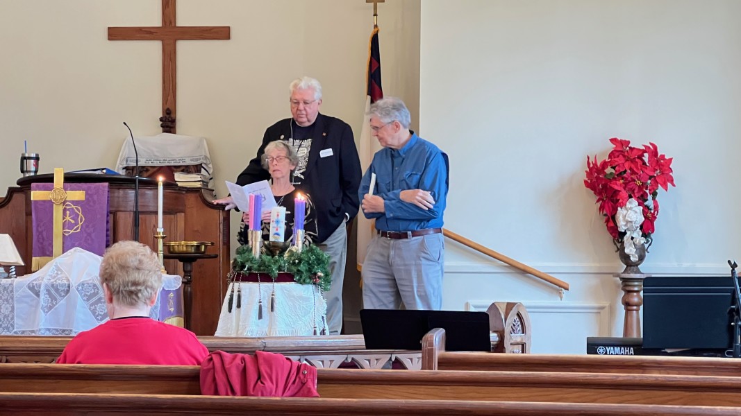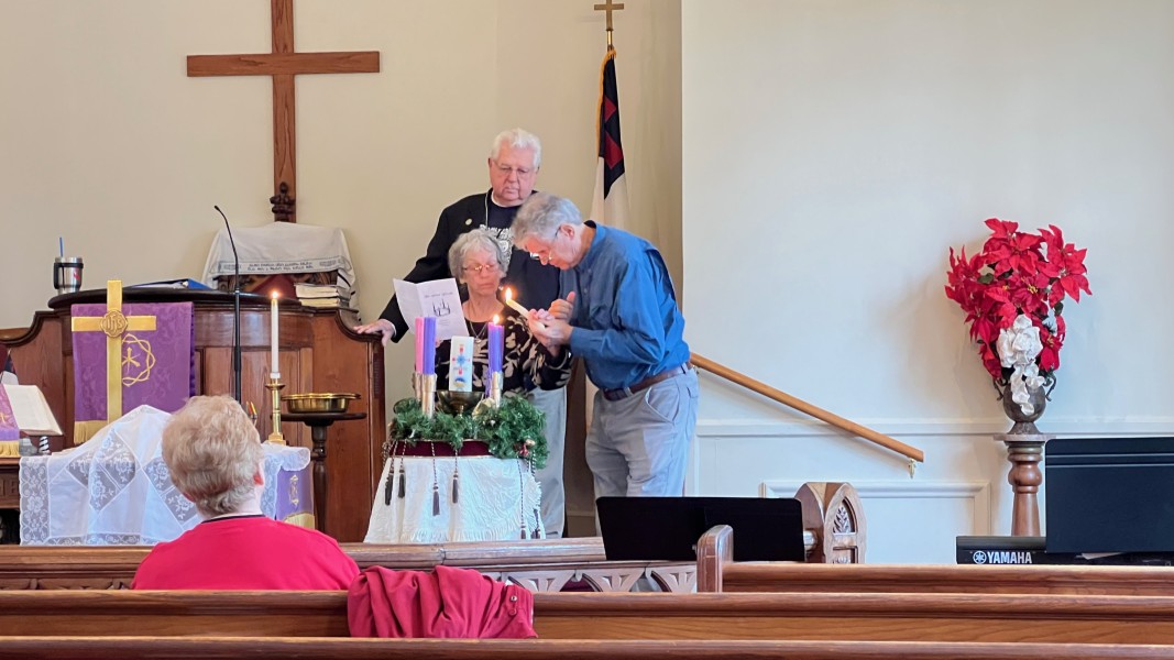 Linda Cisne and Dave Watson light the Second Advent candle.