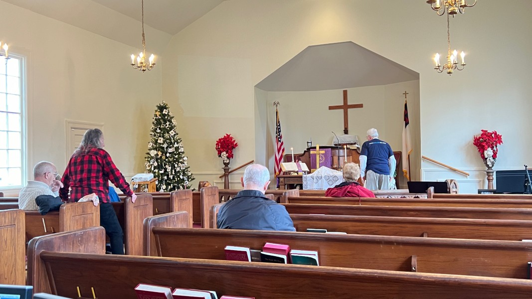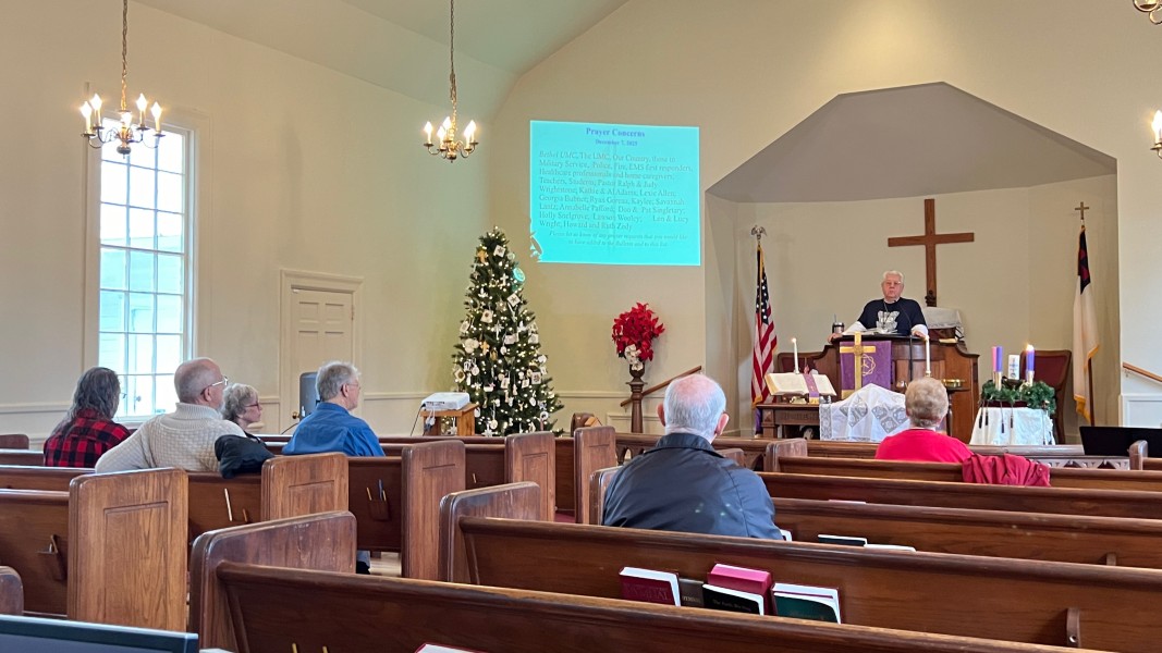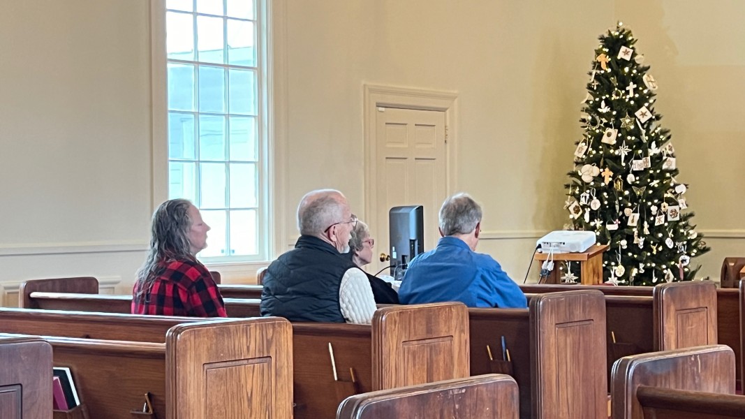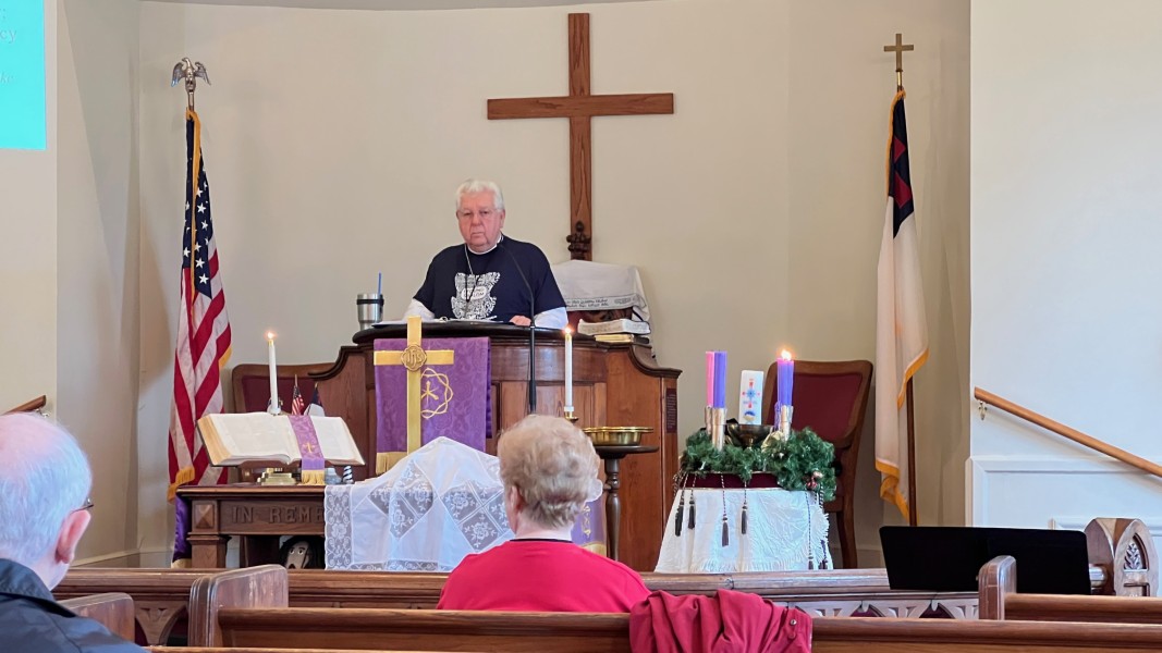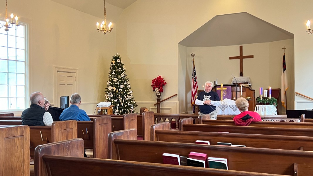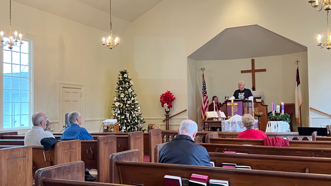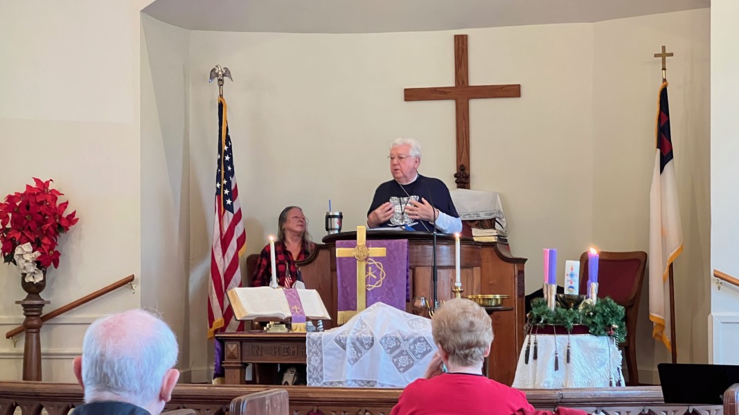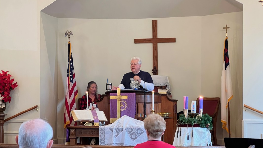 Linda Cisne and Dave Watson light the Second Advent candle.