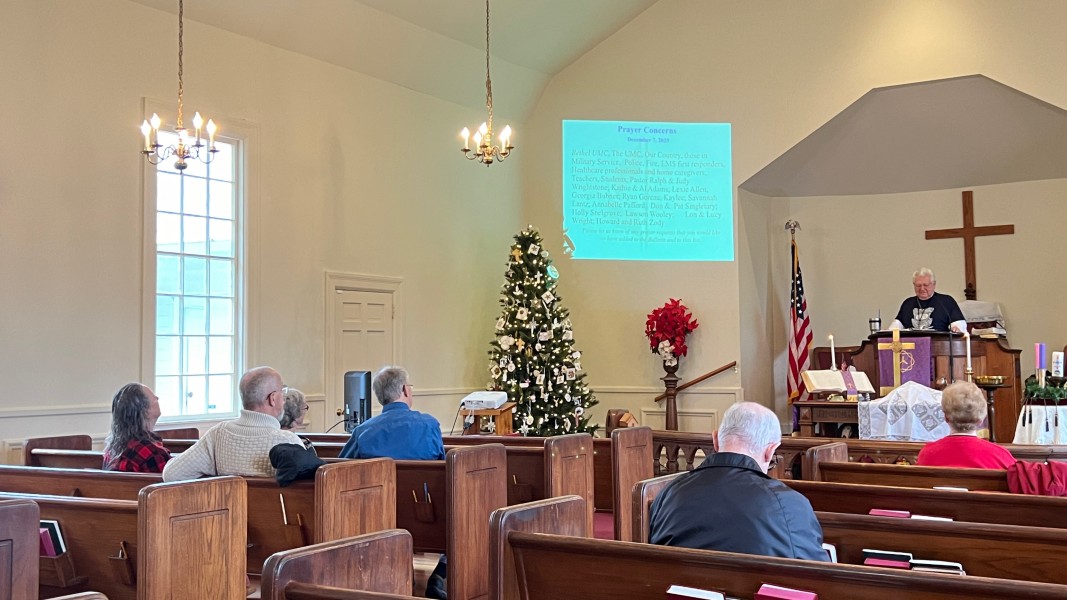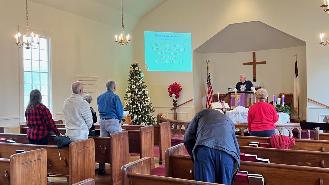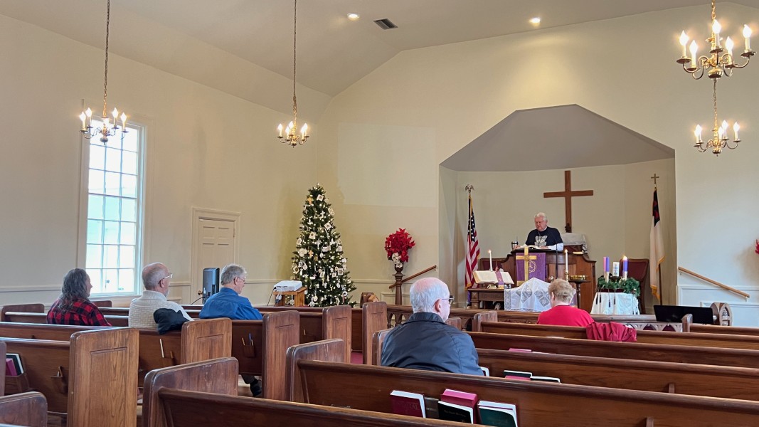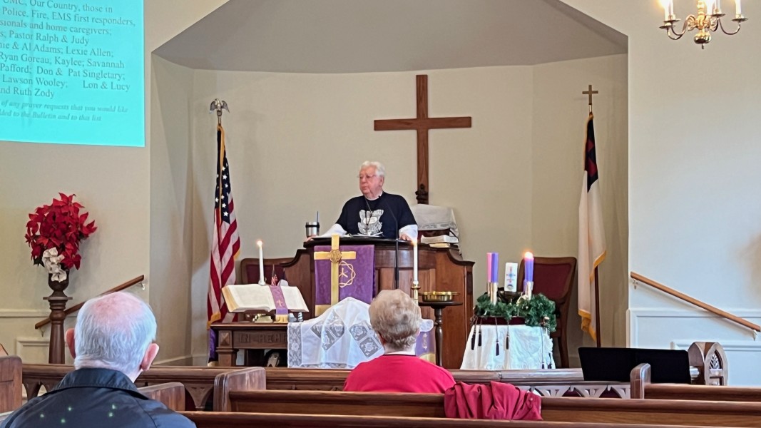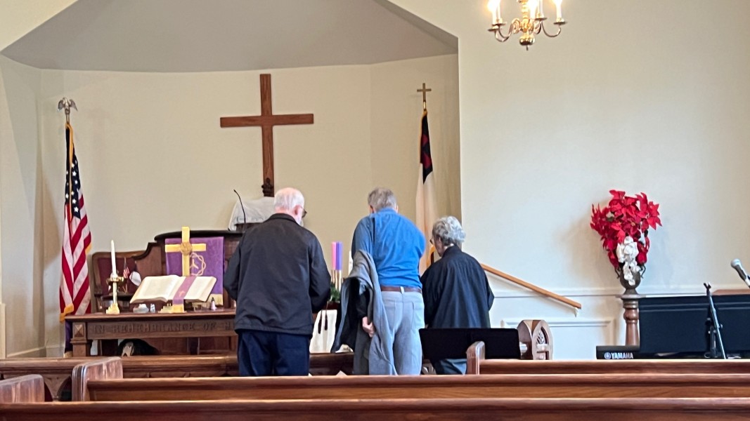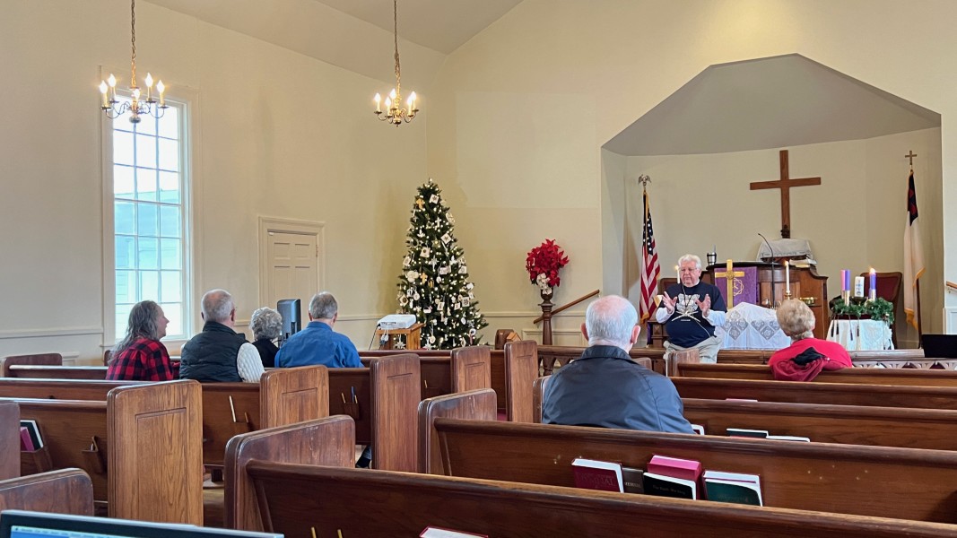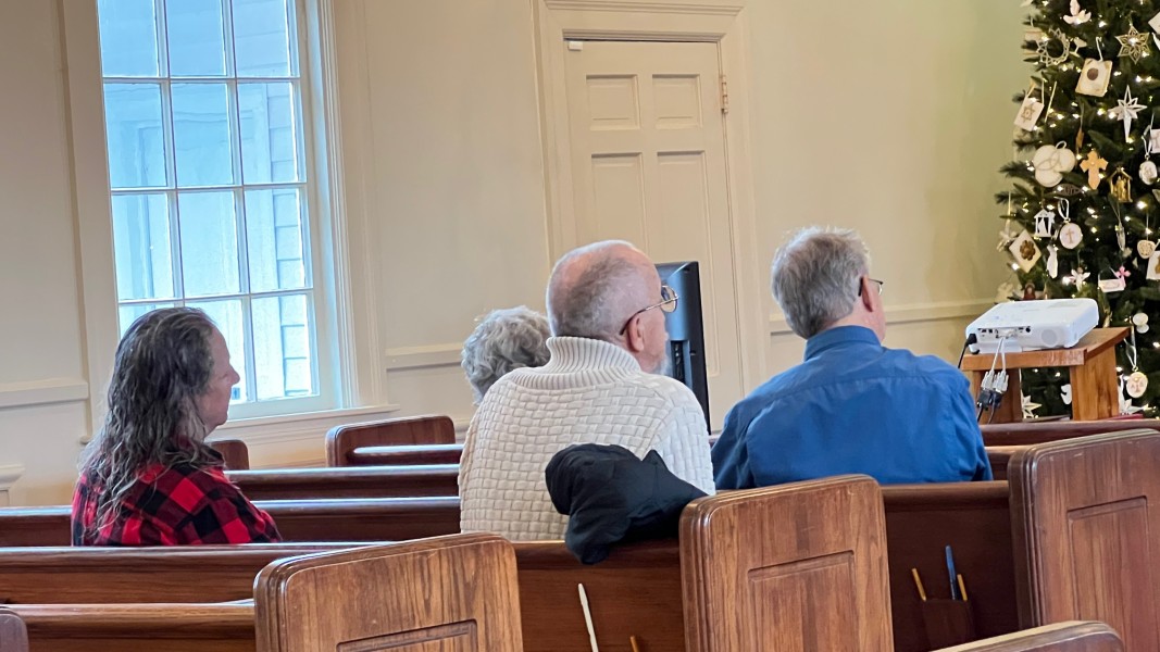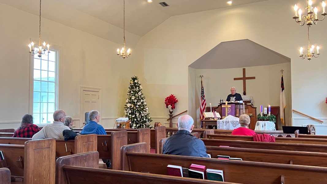 Linda Cisne and Dave Watson light the Second Advent candle.