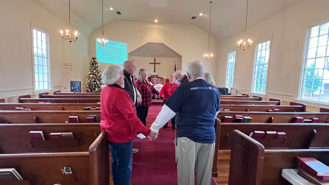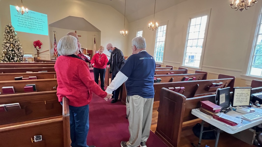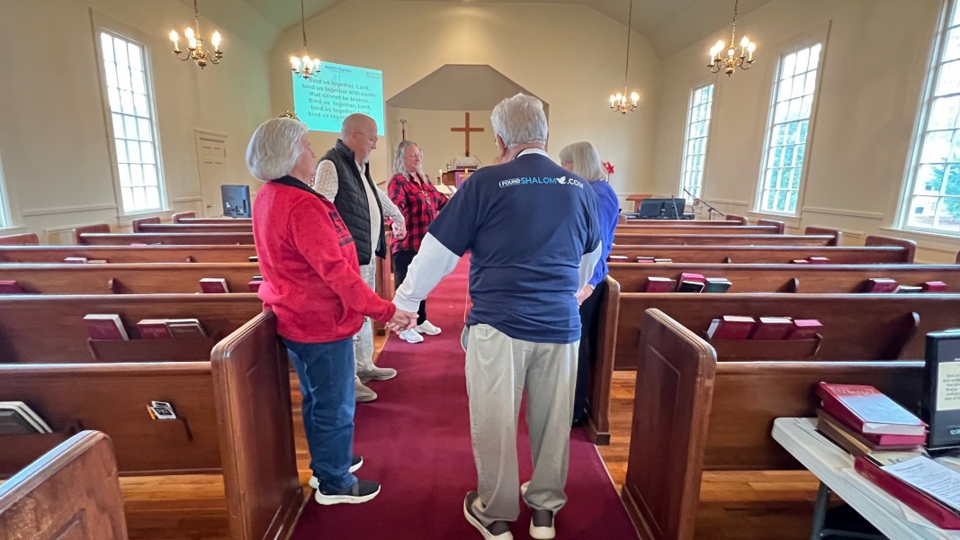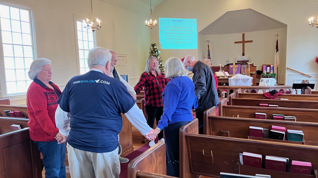 Gather in the center aisle, join hands for singing: "Bind Us Together"