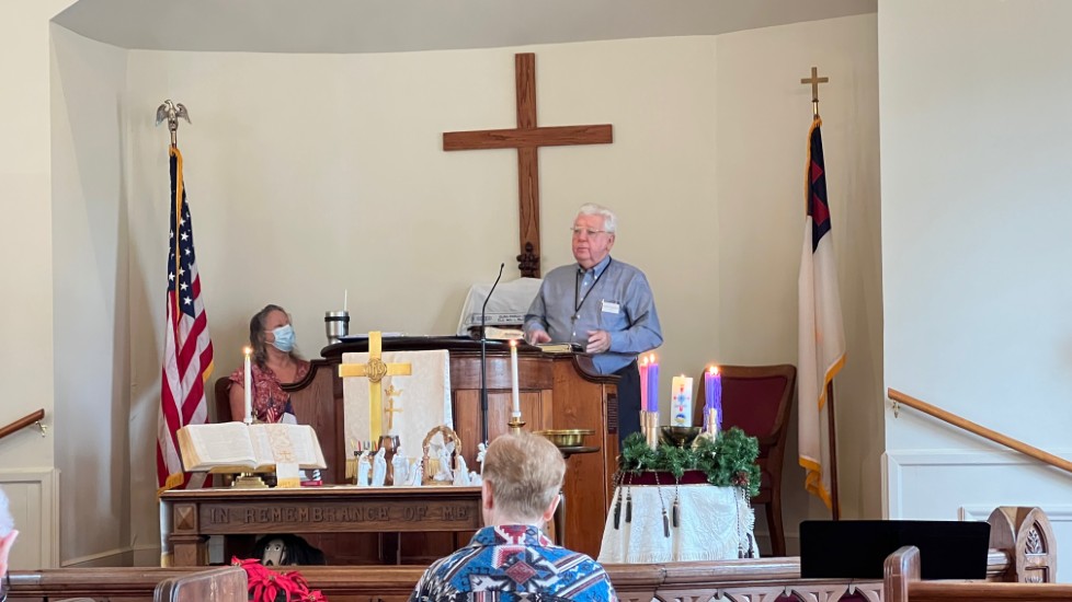 Mark rings the bell to announce the service