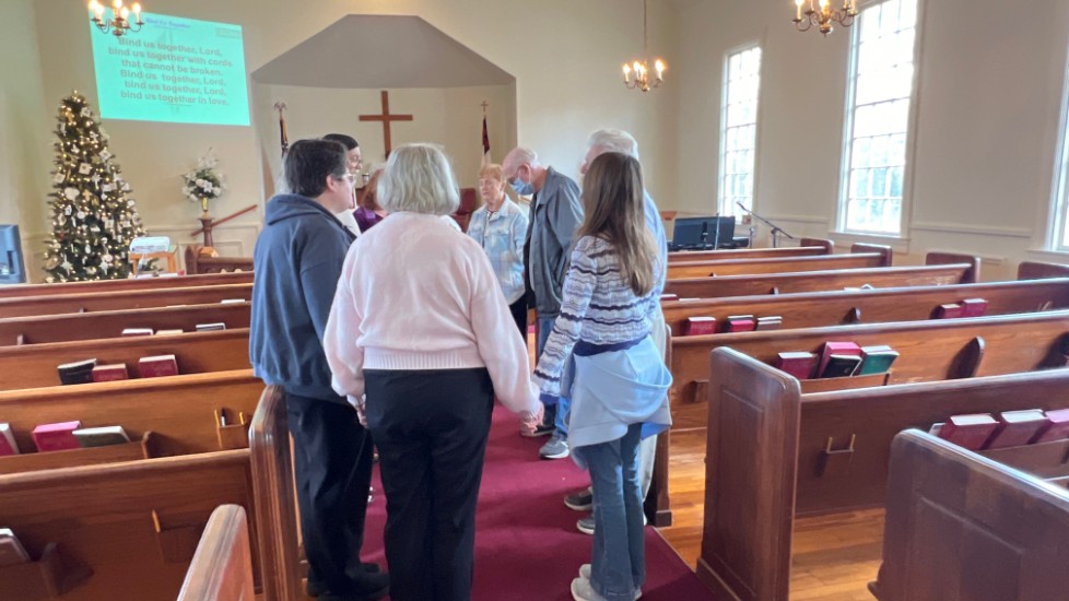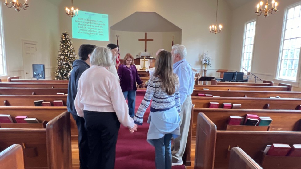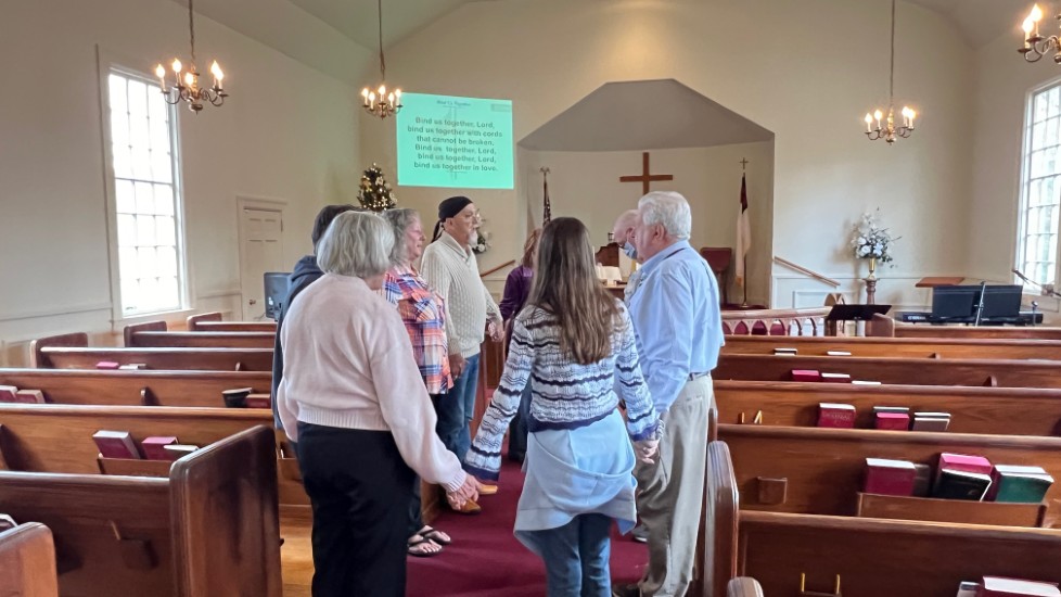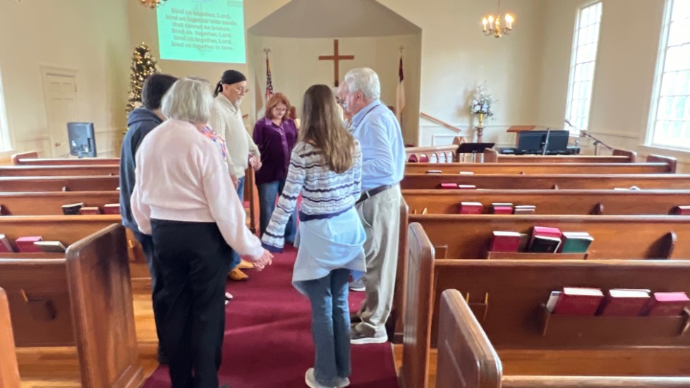 Gather in center aisle...join hands...