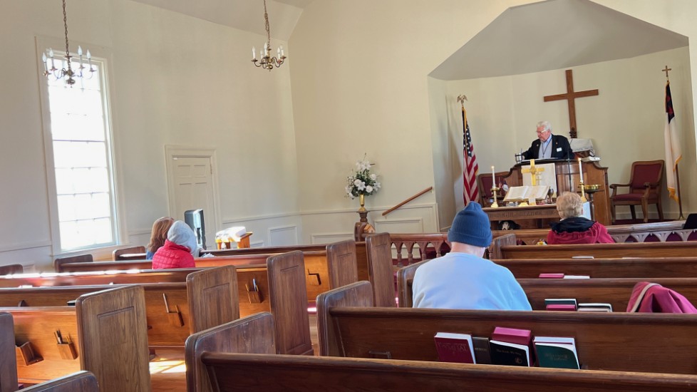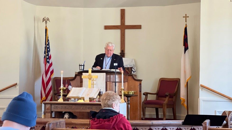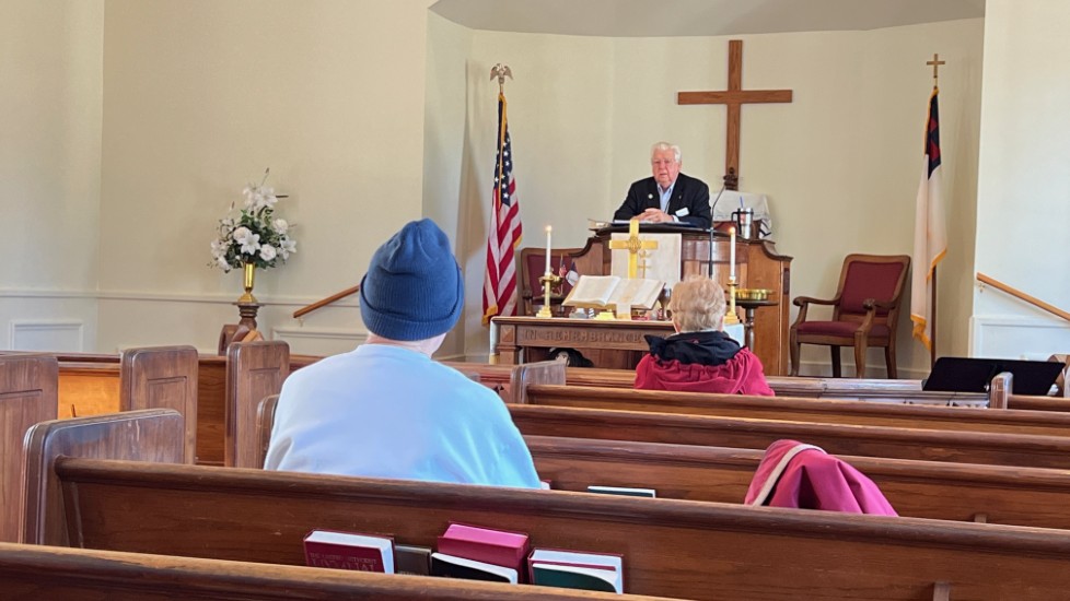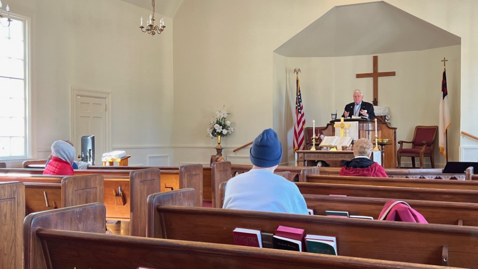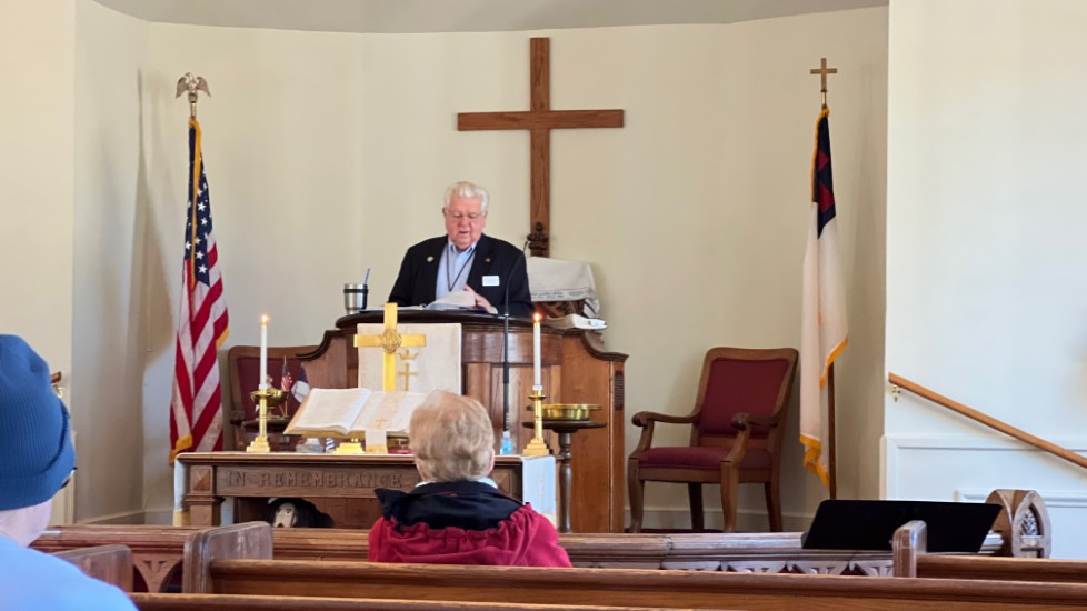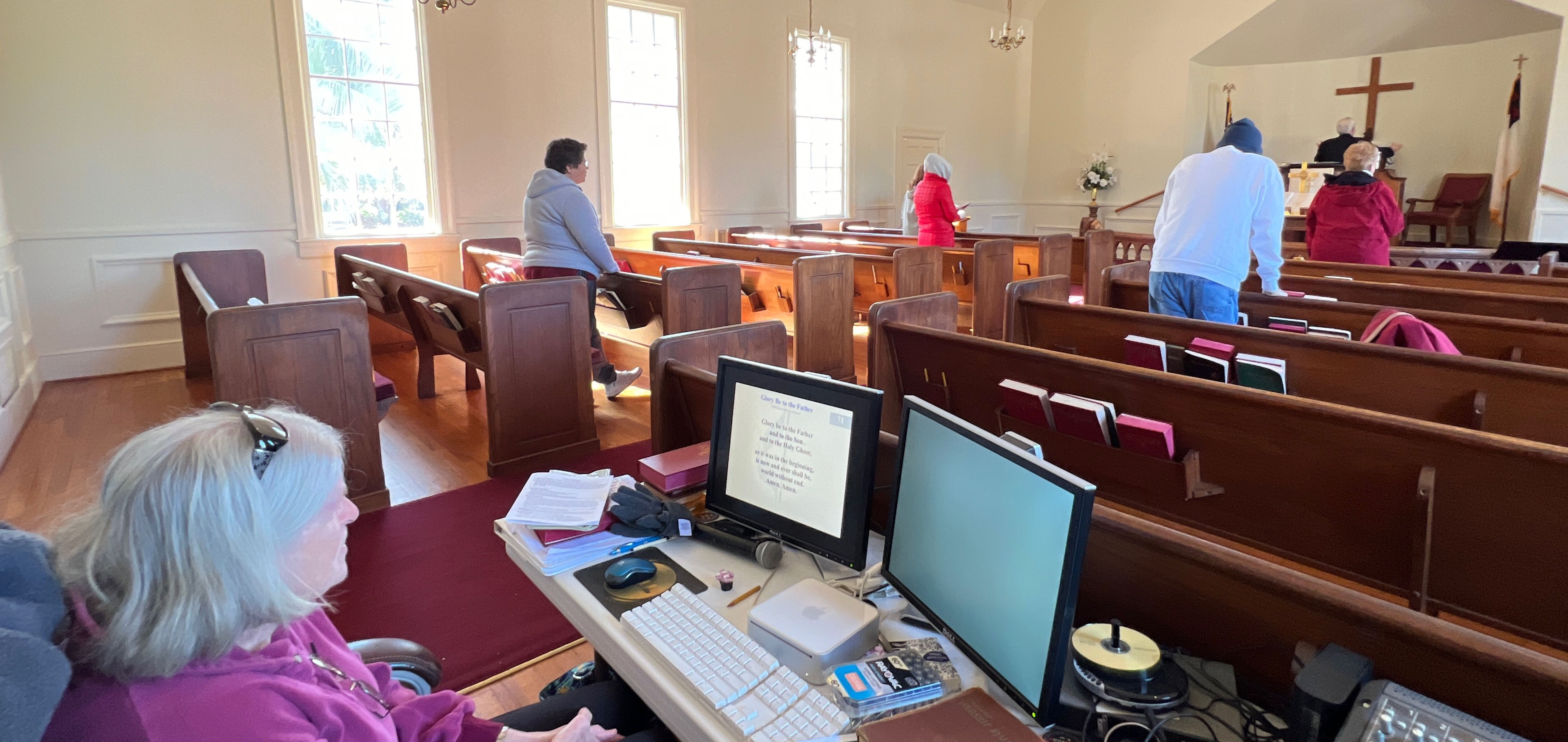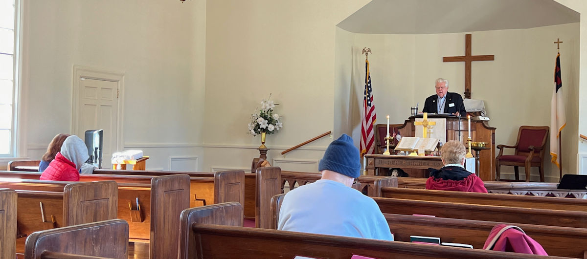 On this day, Tallahassee was in the middle of a cold spell that brought temperatures in the low 20's on Saturday and Sunday. The power went off at the church Saturday afternoon for several hours but was restored allowing the temperature inside to be 68 degrees for the service. A problem with the projection system required returning to using the bulletin, hymnals...and memory...for responses and hymn verses.