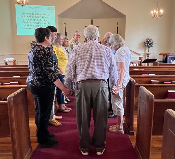 Gather in center aisle, join hands...and...