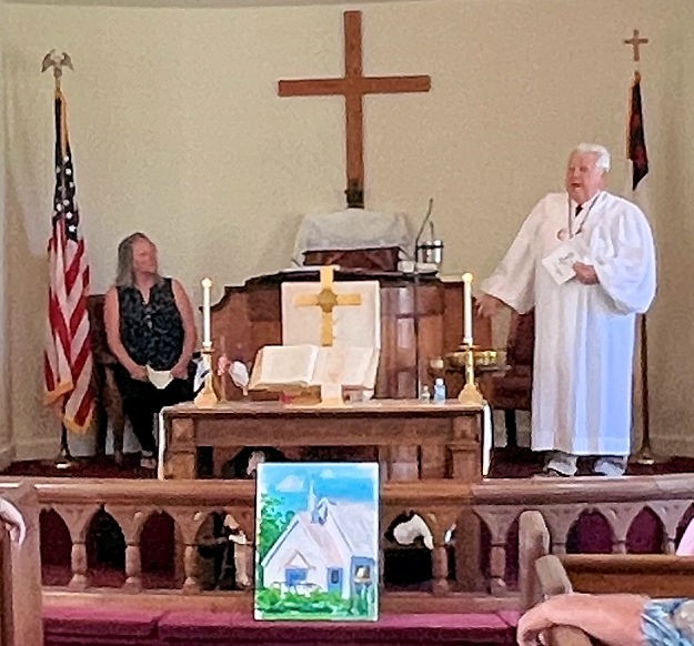...recognising Dianne Dyal, who painted the picture of the church at the altar...