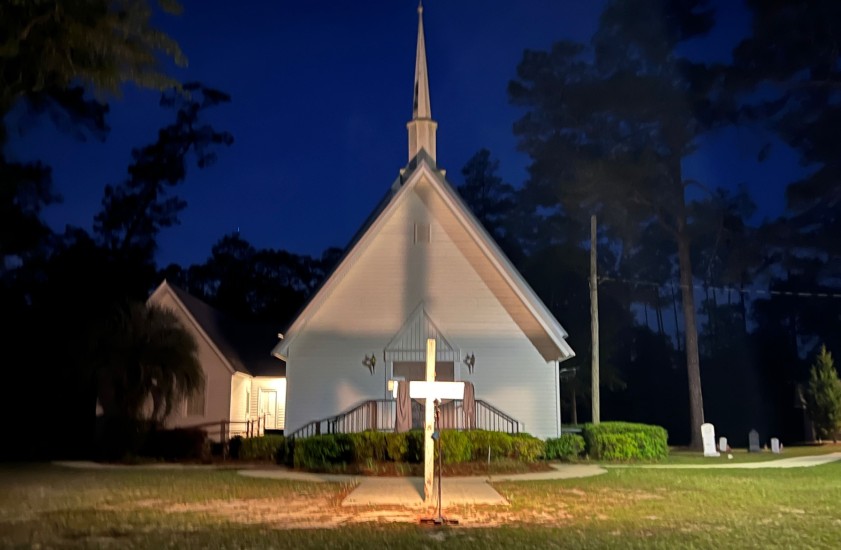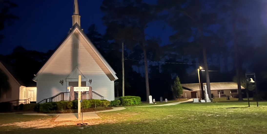 The draped cross bore the sign: "IS IT NOTHING TO YOU"