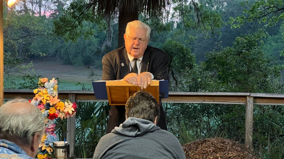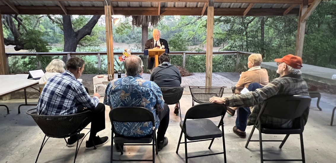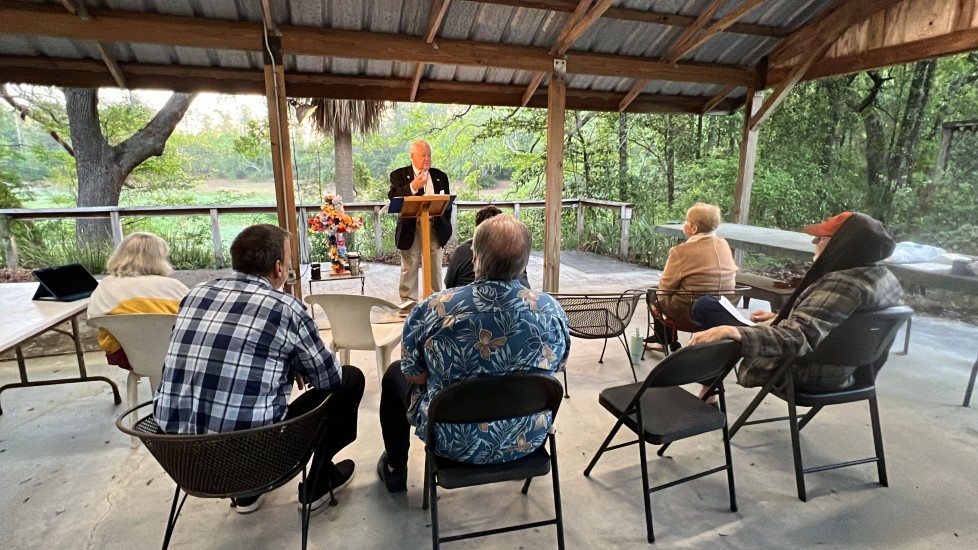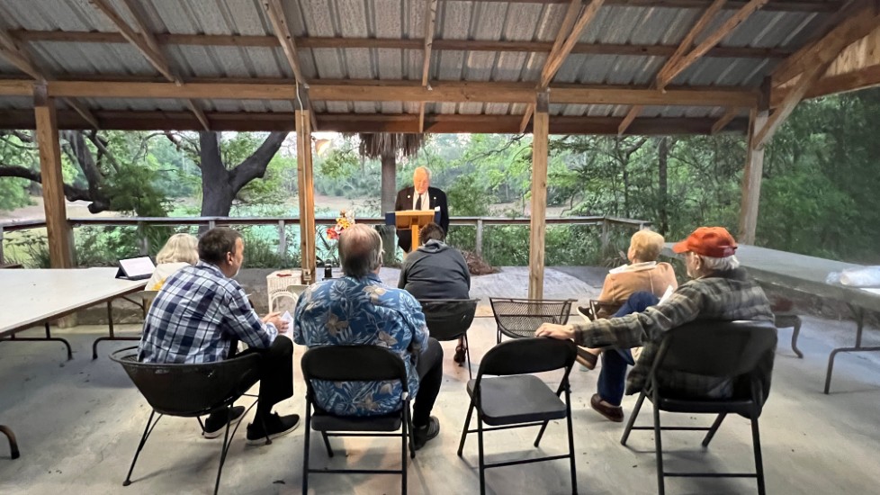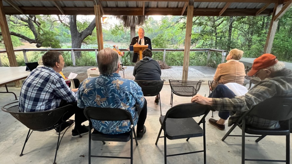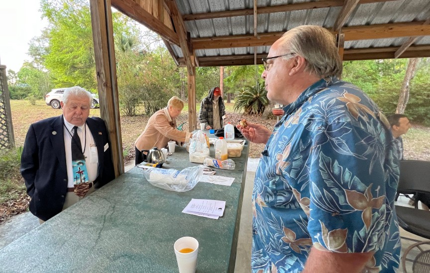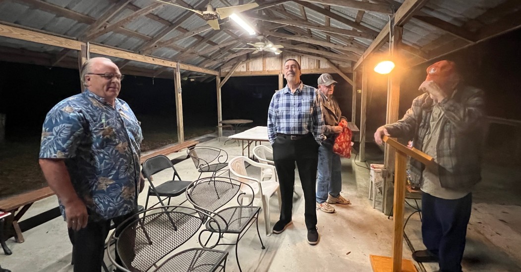 Don Singletary greets surprise visitors, Martin Hamblin, friend of