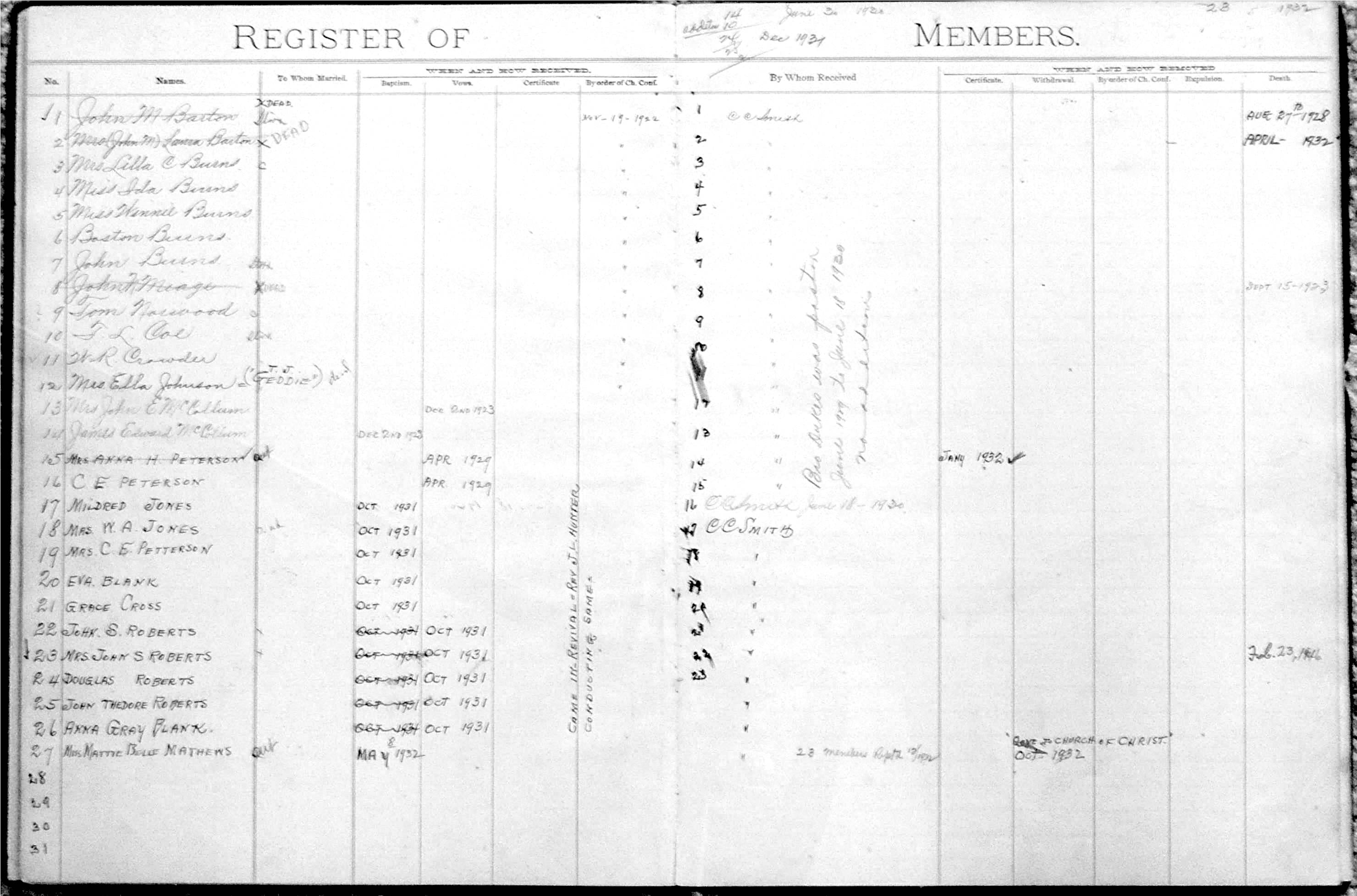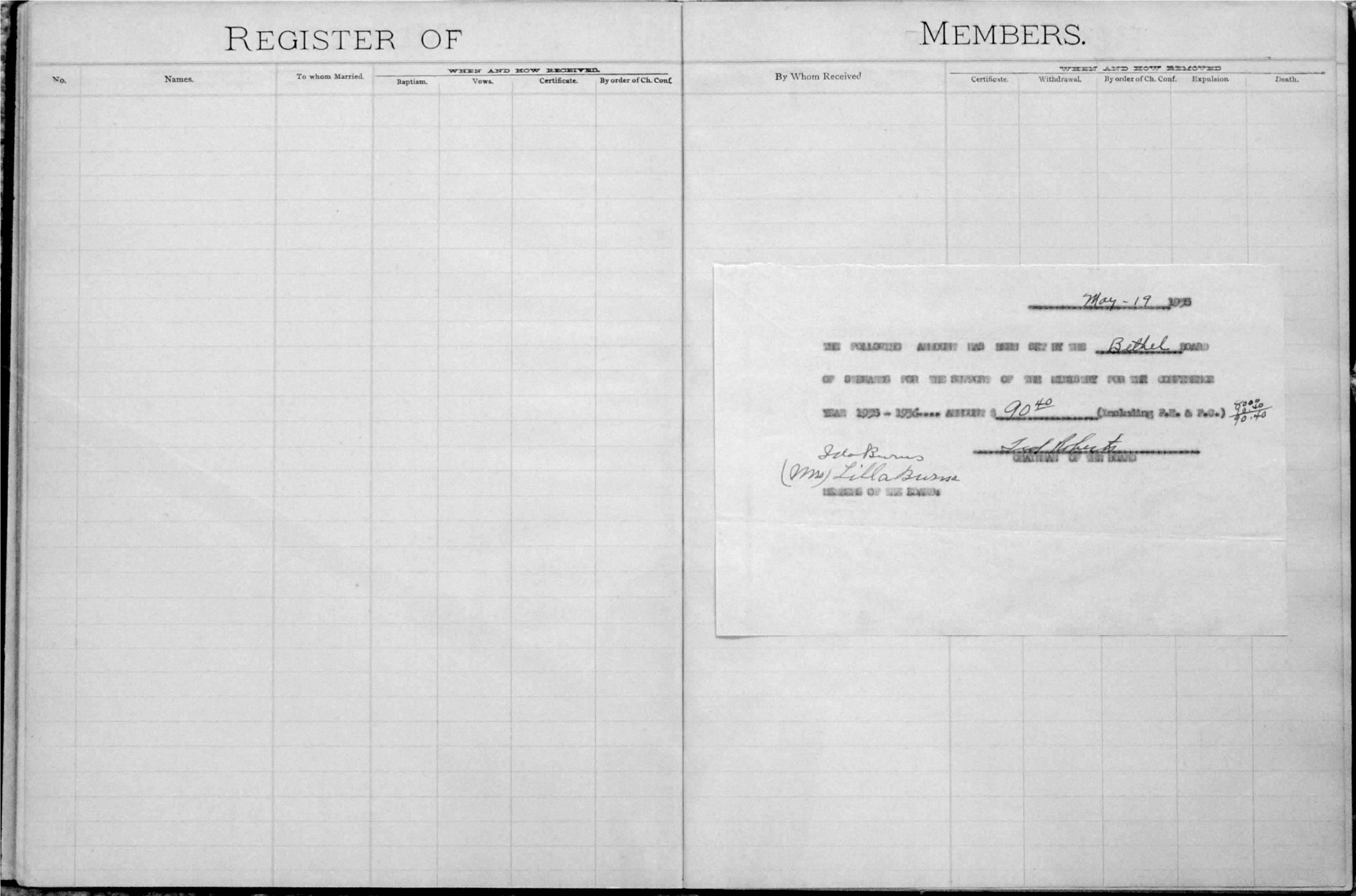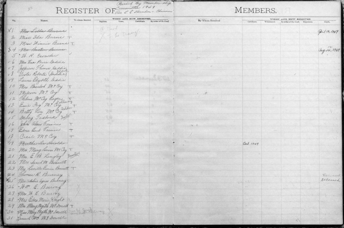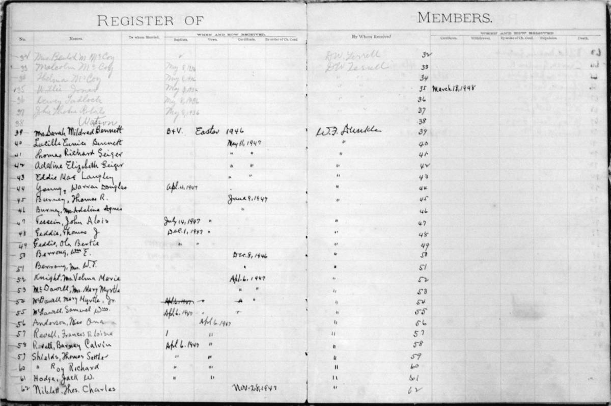 Bethel Membership Book October 19, 2008 Click on any of the small photos to open a larger version of the photo for viewing. Then click on your browser's "Return" or "Back" icon to return to this page.