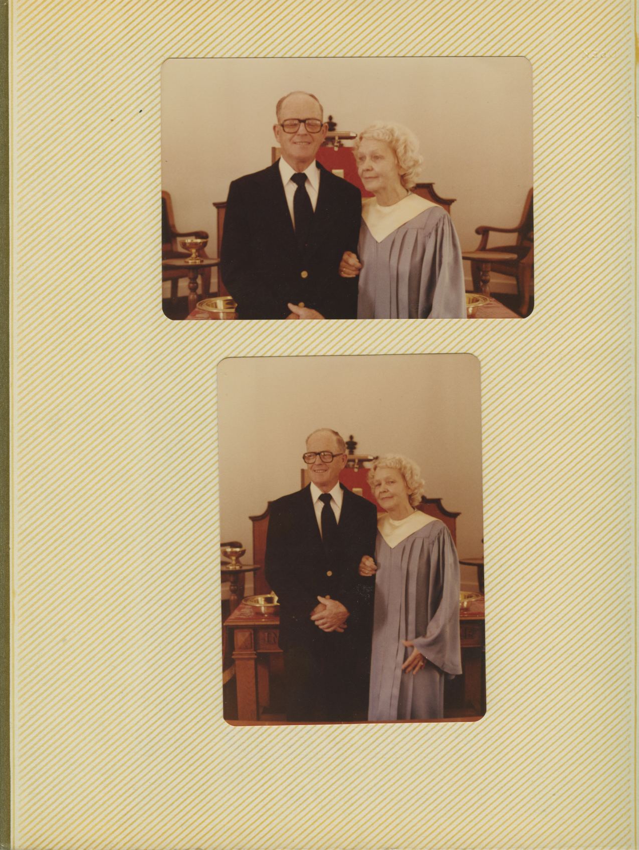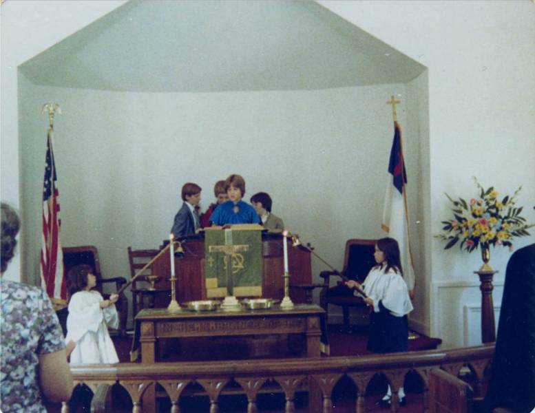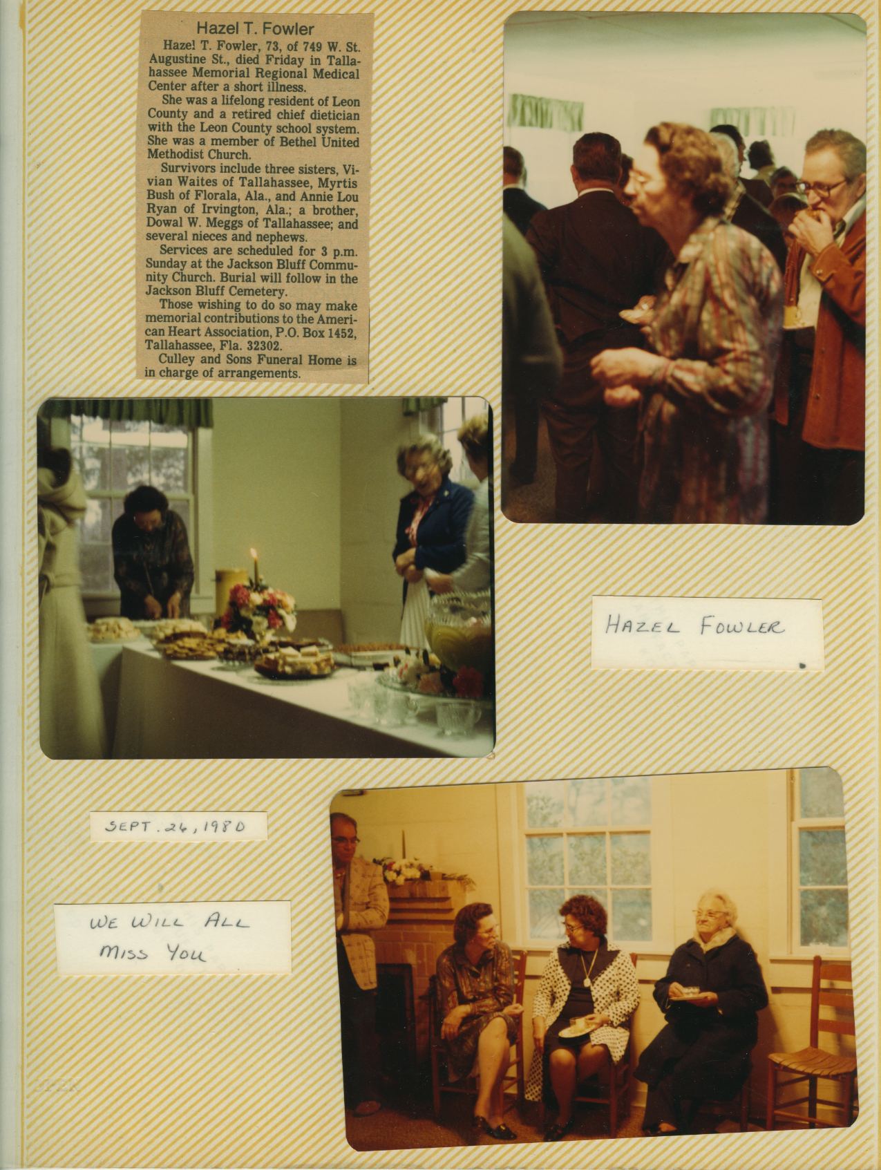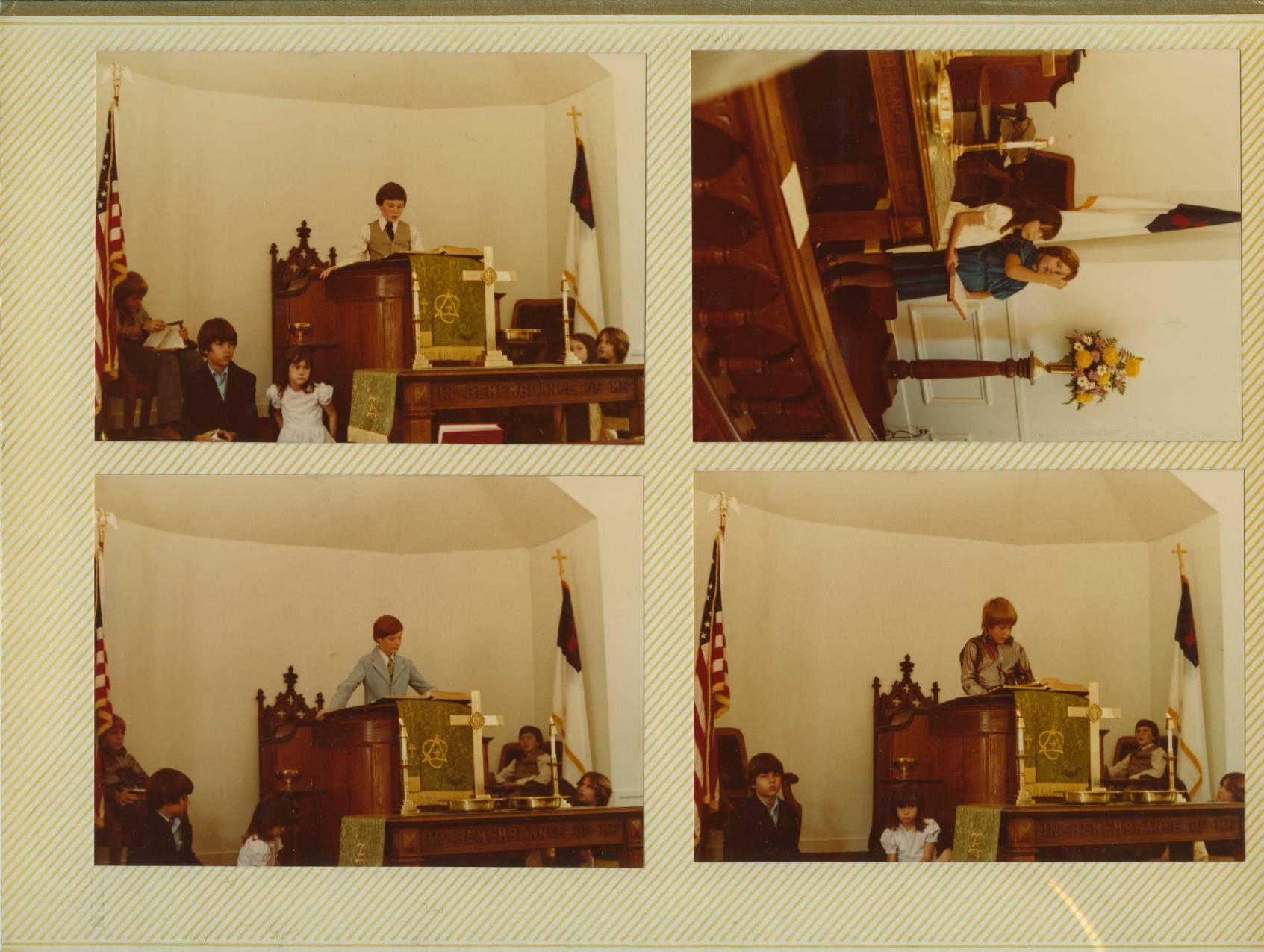 The pictures from each page of the album are grouped below following an image of the album page. The album pages appear much as they currently do in the albums. Most of the individual color photos have been modified in an attempt to restore the original coloring of the photo. Click on an image below to view a larger version of the album page or picture. Some album pages have text that describes the occasion and/or date of the photos. Bethel Photo Album "B"