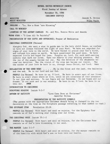 Bulletin for the Christmas Program on Dec 21, 1986
