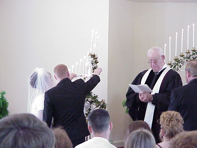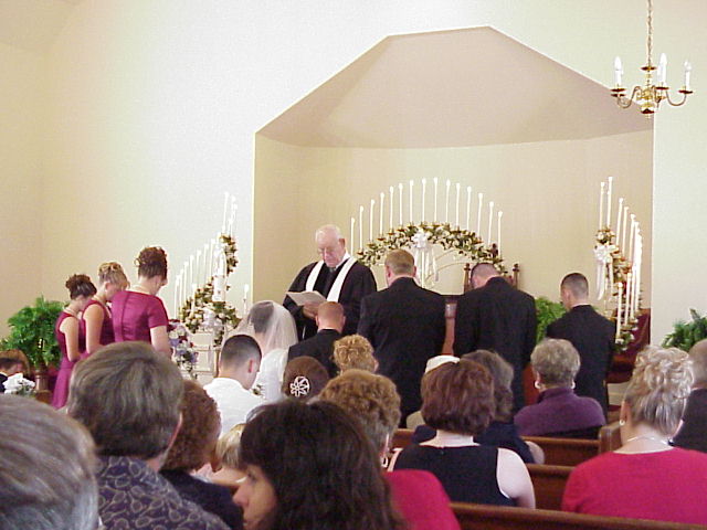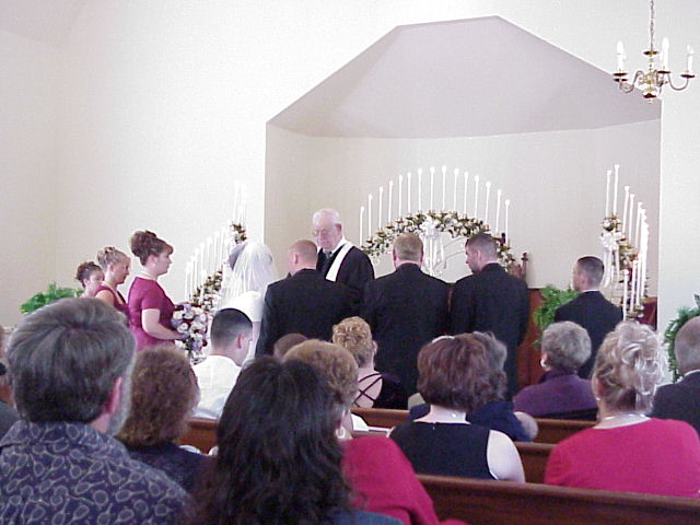 This page provides access to more than 50 digital photos that were taken at the wedding of Glenn Abbott and Amanda Odem at Bethel on October 29, 2000. Clicking on a small image opens a larger view of the photo. Click on a small photo to view the larger photo. Clicking on the hilited/underscored title at the top of this index page will begin a "slide show" in which each of the photos will be shown for 3 seconds.
