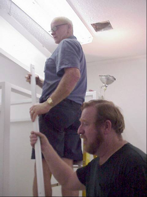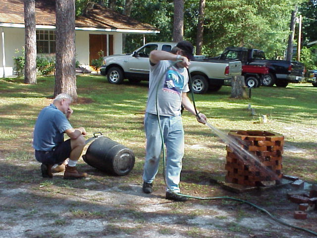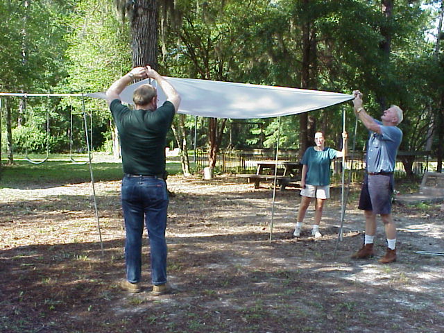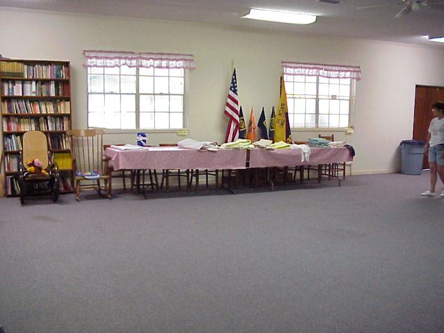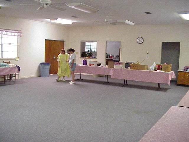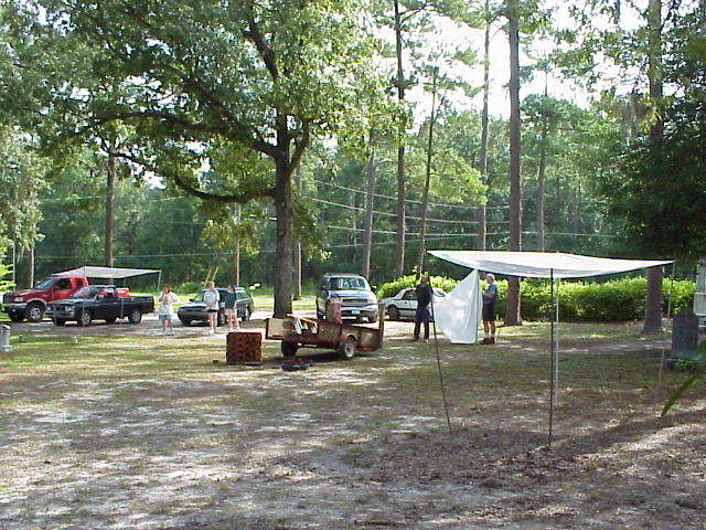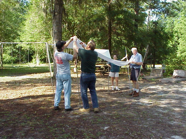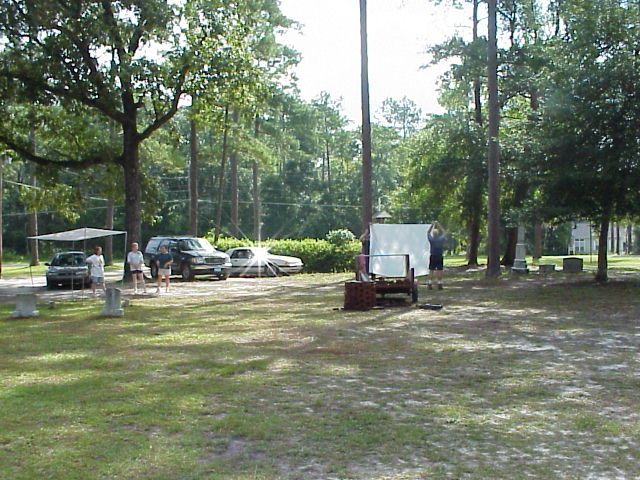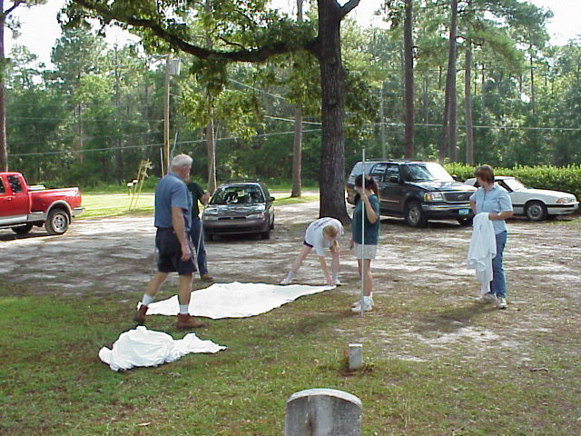 Cleanup for VBS July 28, 2001 Tom Moore & Don Singletary work on the village well Donnie Abbott & pastor Laura Beth Fisher join in putting up the tents Pat Singletary fixes Sandra Willis' costume