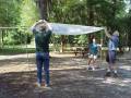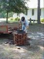 Tom Moore & Don Singletary work on the village well Donnie Abbott & pastor Laura Beth Fisher join in putting up the tents Pat Singletary fixes Sandra Willis' costume
