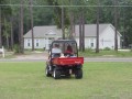 Carter Singletary and David Zody take a ride in the "Mule" after the service