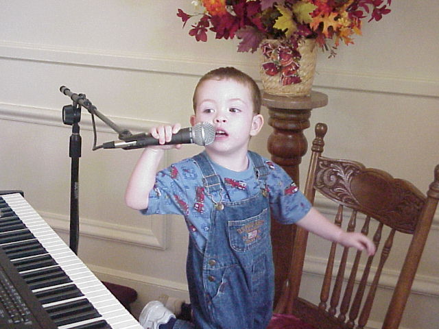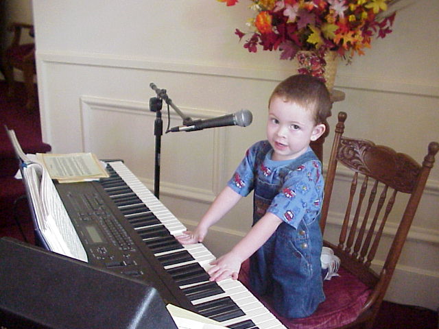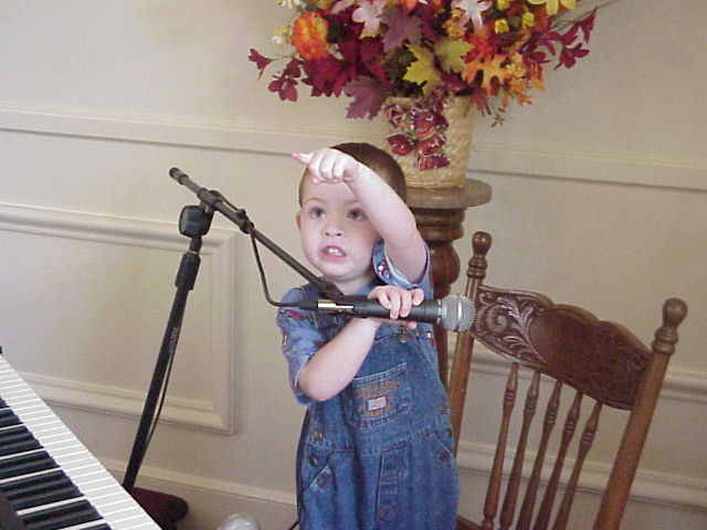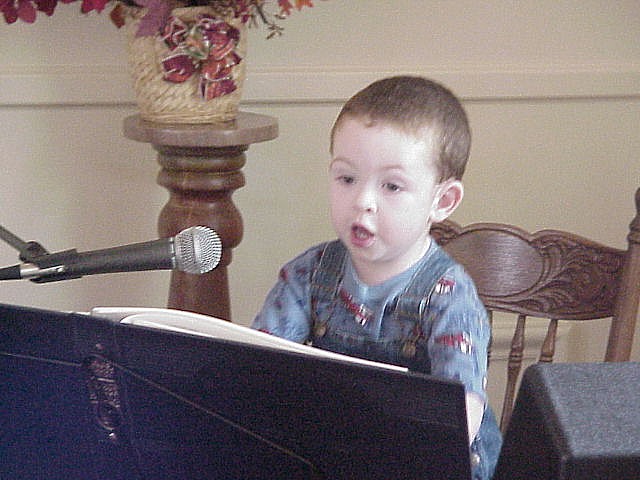 Digital Church Photos Sunday October 20, 2002 Pastor Steven Riddle gives the children's talk David Zody "practices" after the service