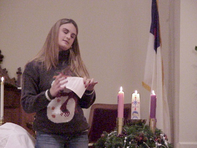 Digital Church Photos Tuesday December 24, 2002 Sara Holton lights the Christ Candle for Christmas Eve