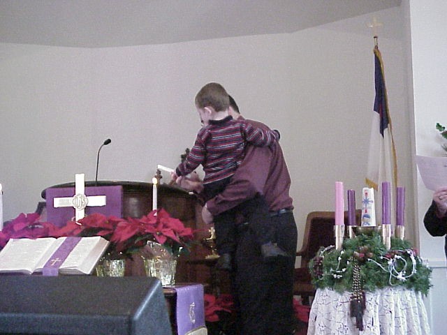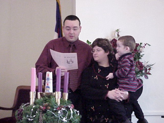 Craig, Janie & David light the first and second Advent candles