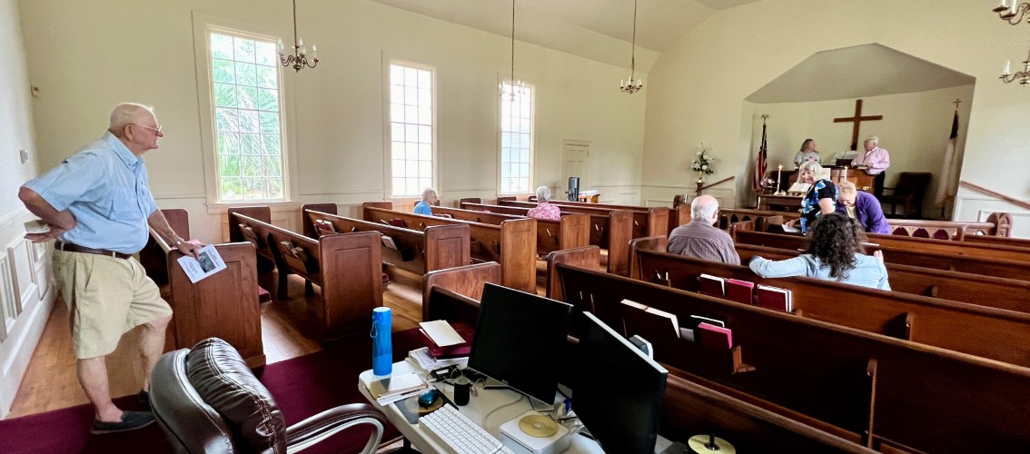 This service was held two days after three tornados came through Tallahassee, with one passing very near Bethel church. There was very little structual damage to buildings on the property, but there was no power for the air, audio or slide projection. (Click here to see pictures around the church.)