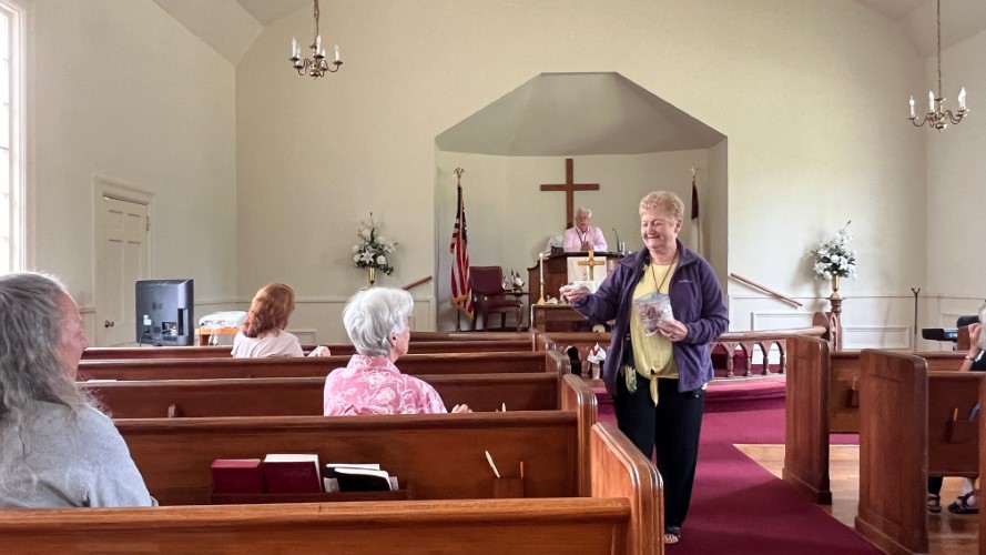 Judy passes out special gifts for the Mothers, prepared for the service by Lay Leader Tina...