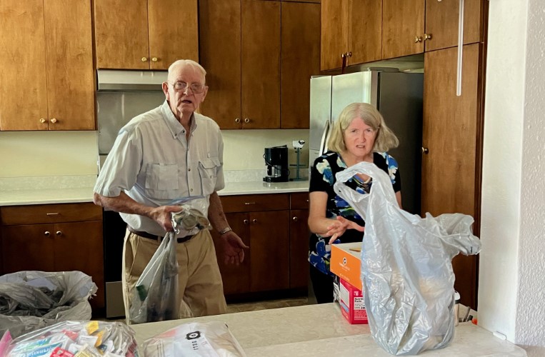 Don Singletary and Betty Brown cleared "spoilables" from the refrigerator