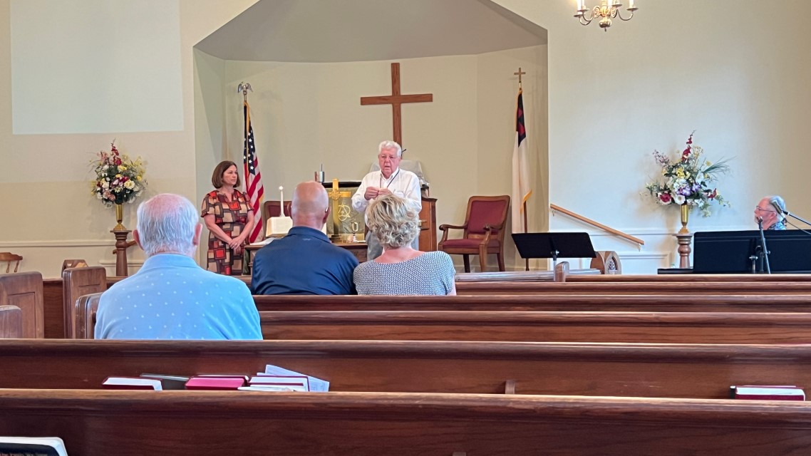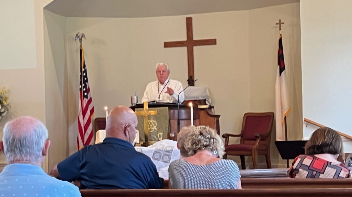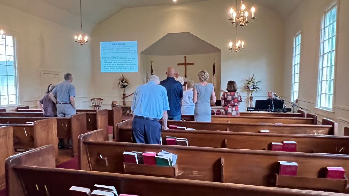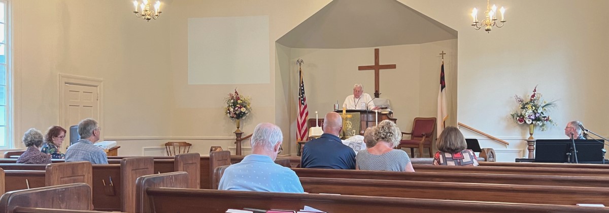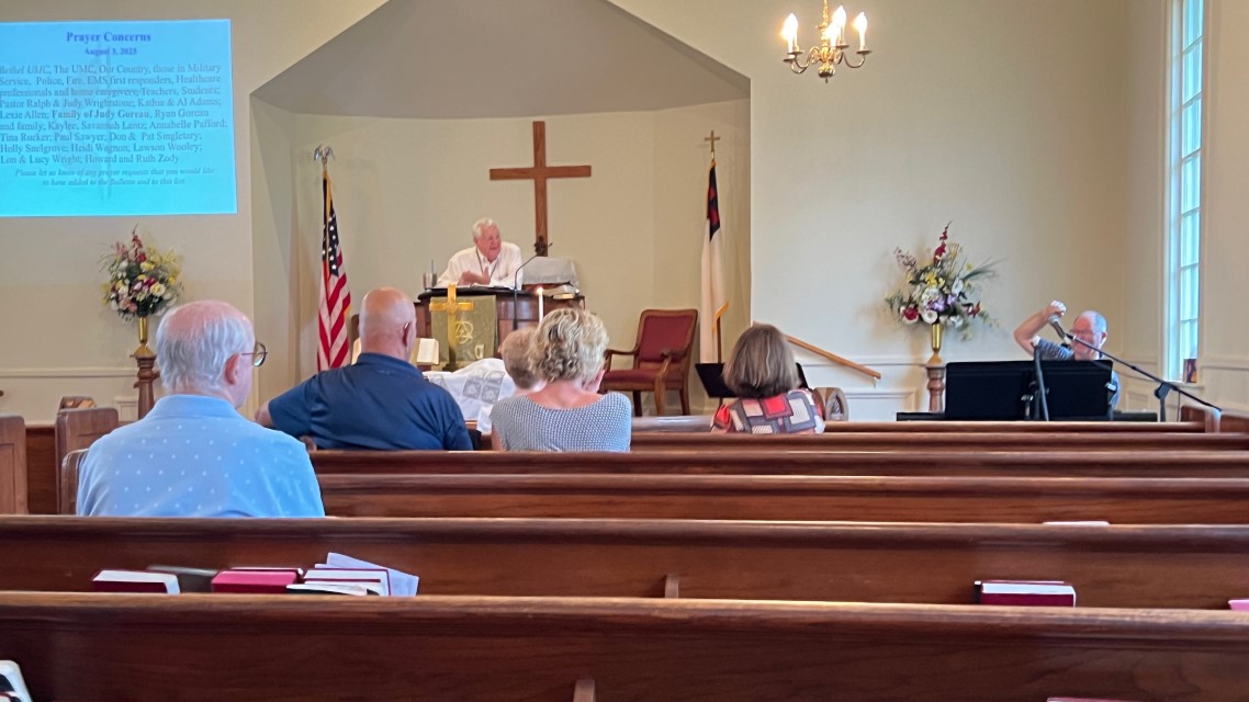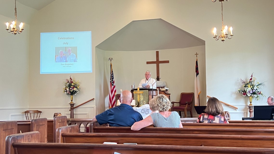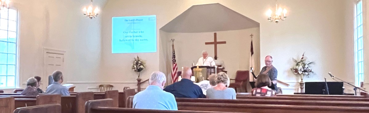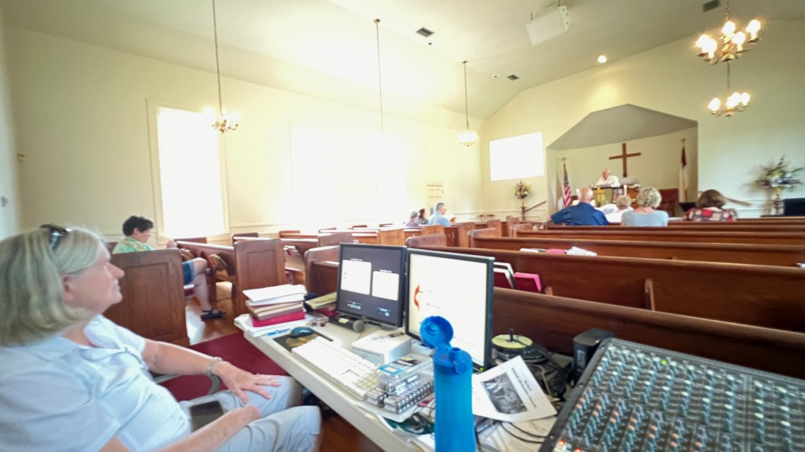 The service today began and ended under cloudy skies with a period of strong showers, thunder, lightning and two brief intervals of power loss during the service. As a result, the surviving recording of the service begins near the end of the time for prayer concerns. On this page, I've used recordings for the online service in place of ones from the church service that were lost.