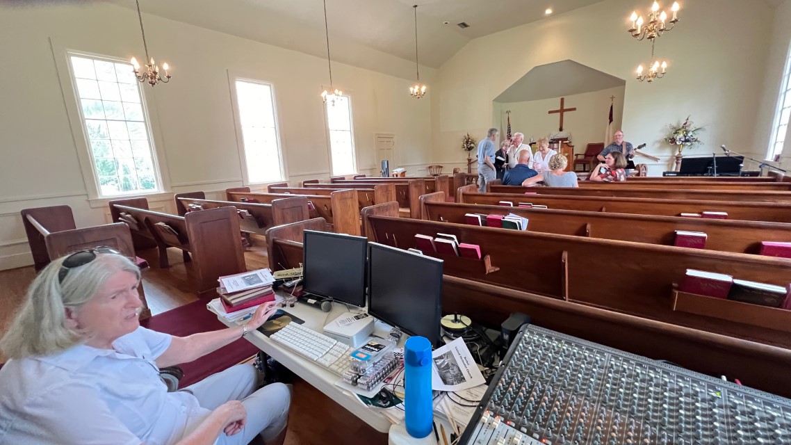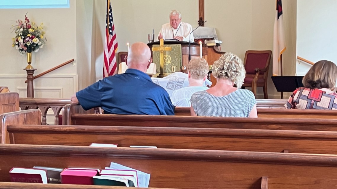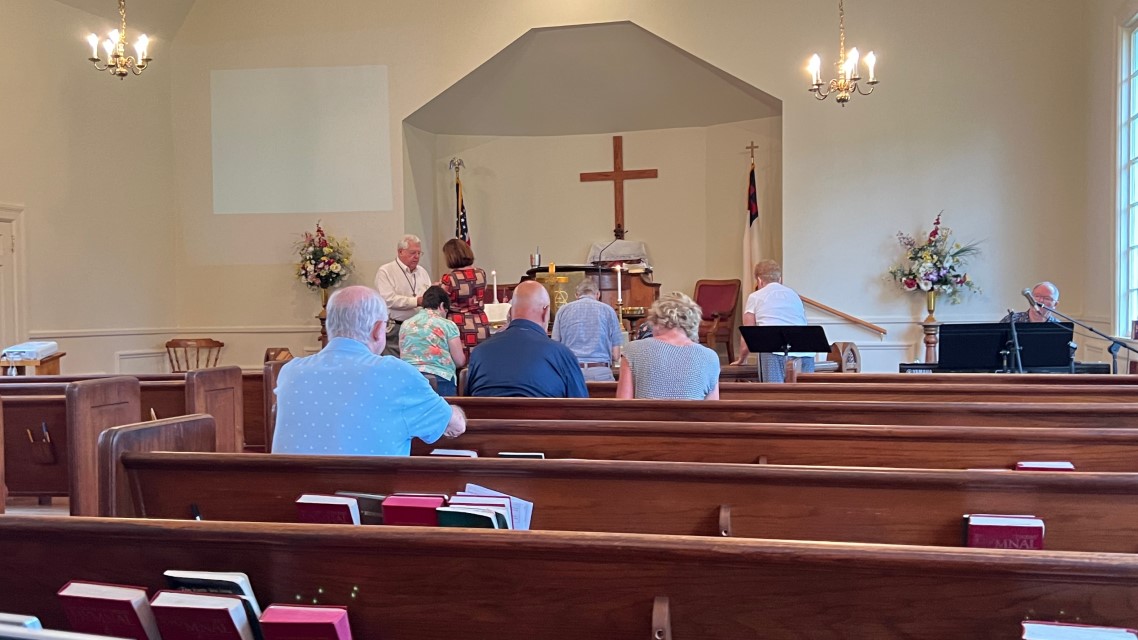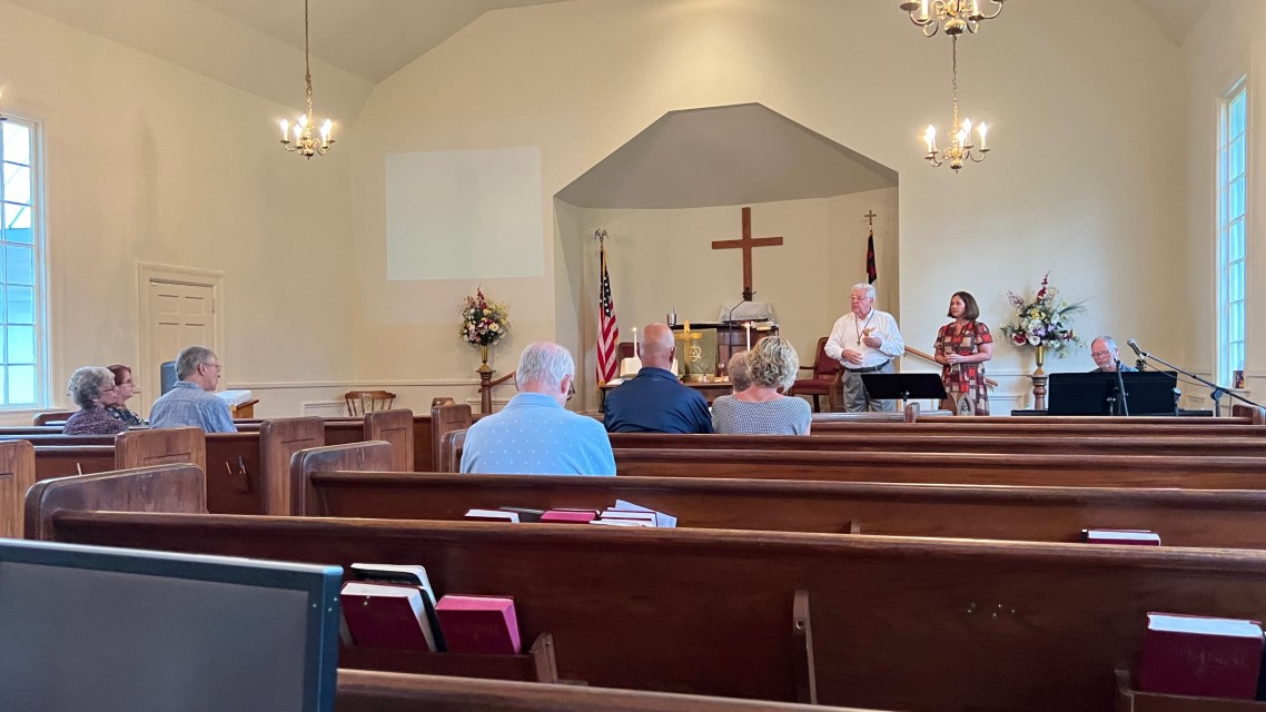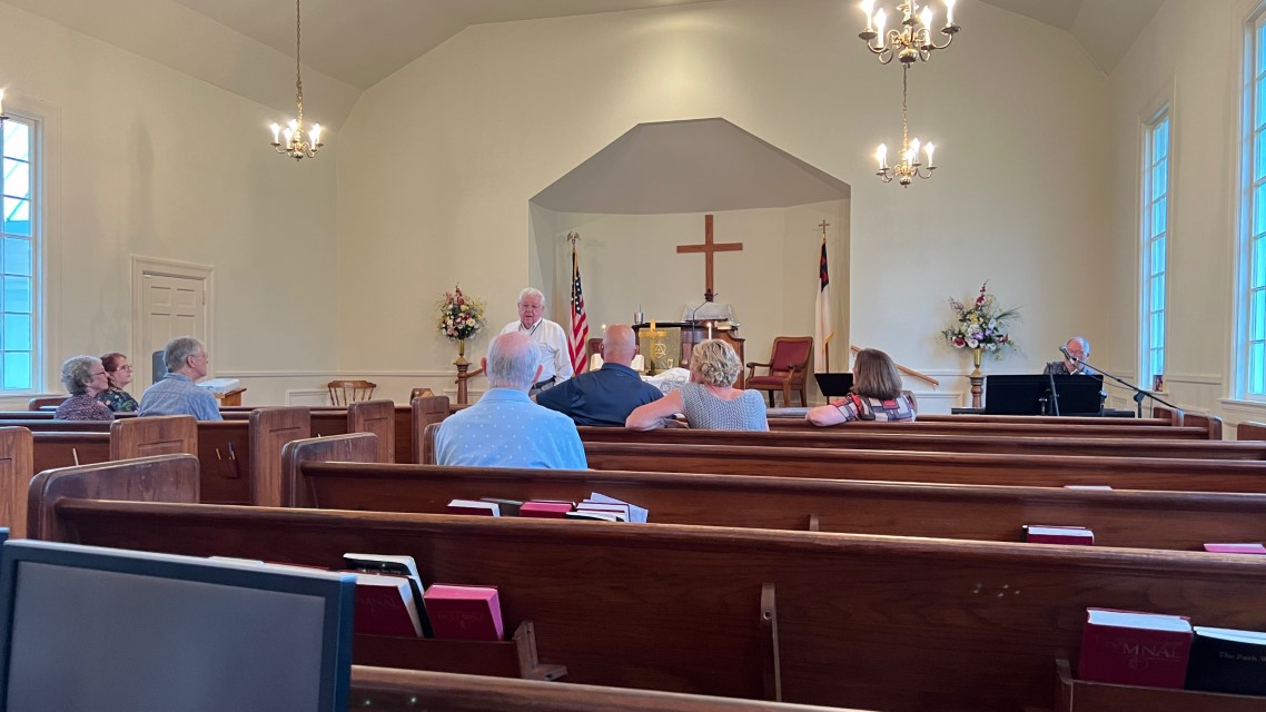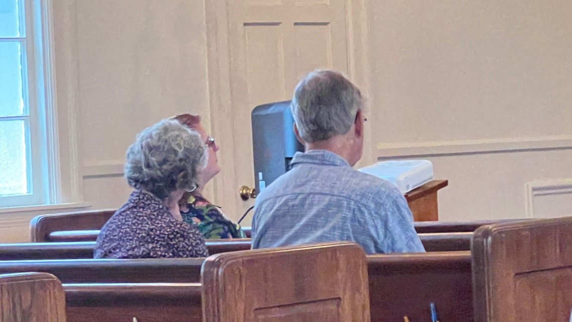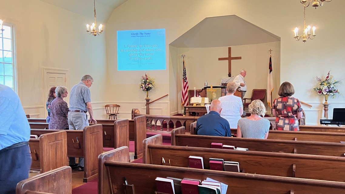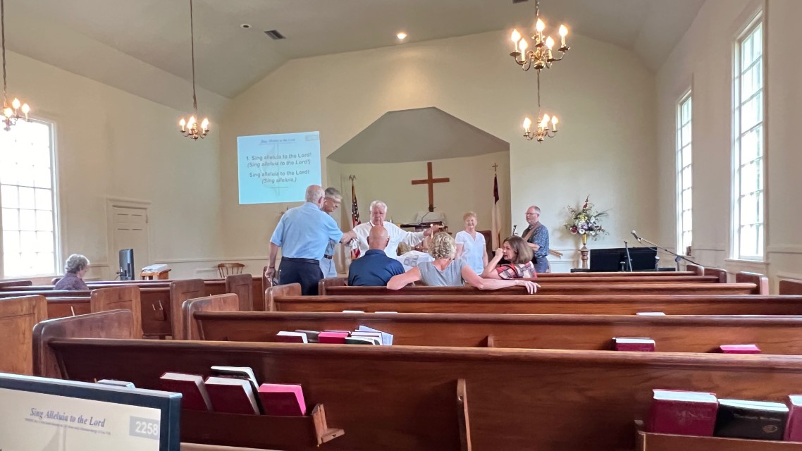 The service today began and ended under cloudy skies with a period of strong showers, thunder, lightning and two brief intervals of power loss during the service. As a result, the surviving recording of the service begins near the end of the time for prayer concerns. On this page, I've used recordings for the online service in place of ones from the church service that were lost.