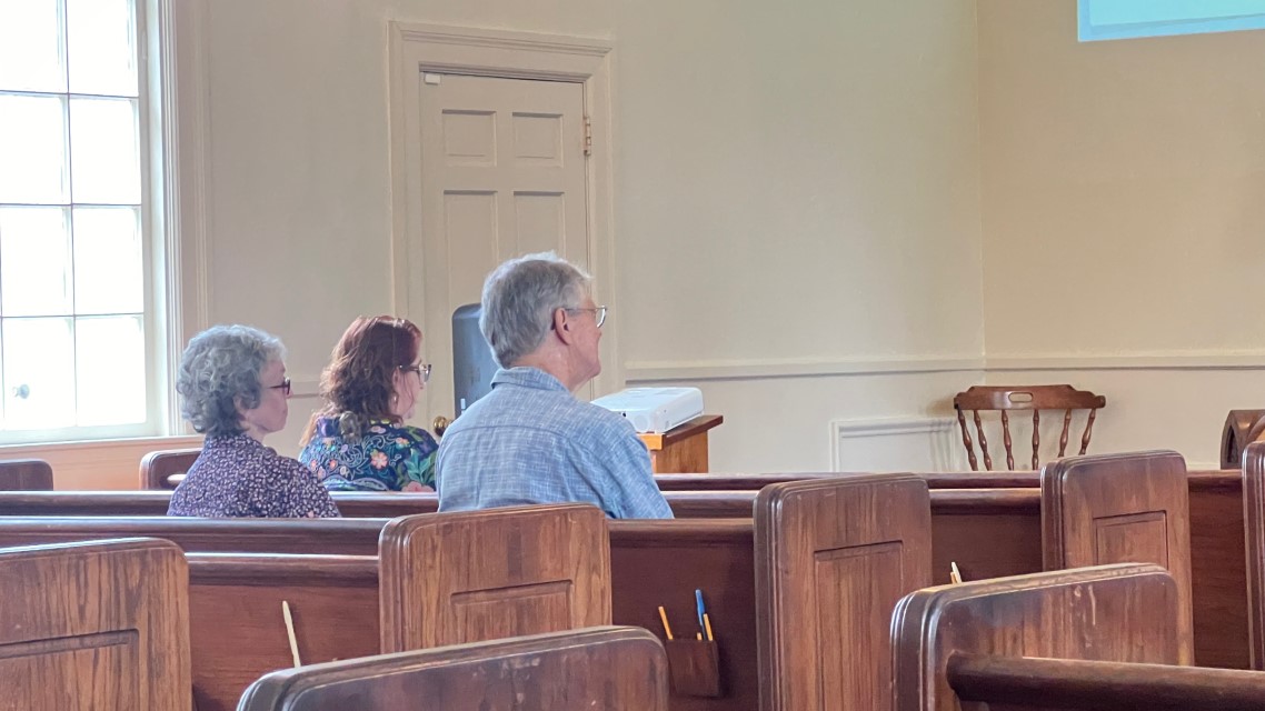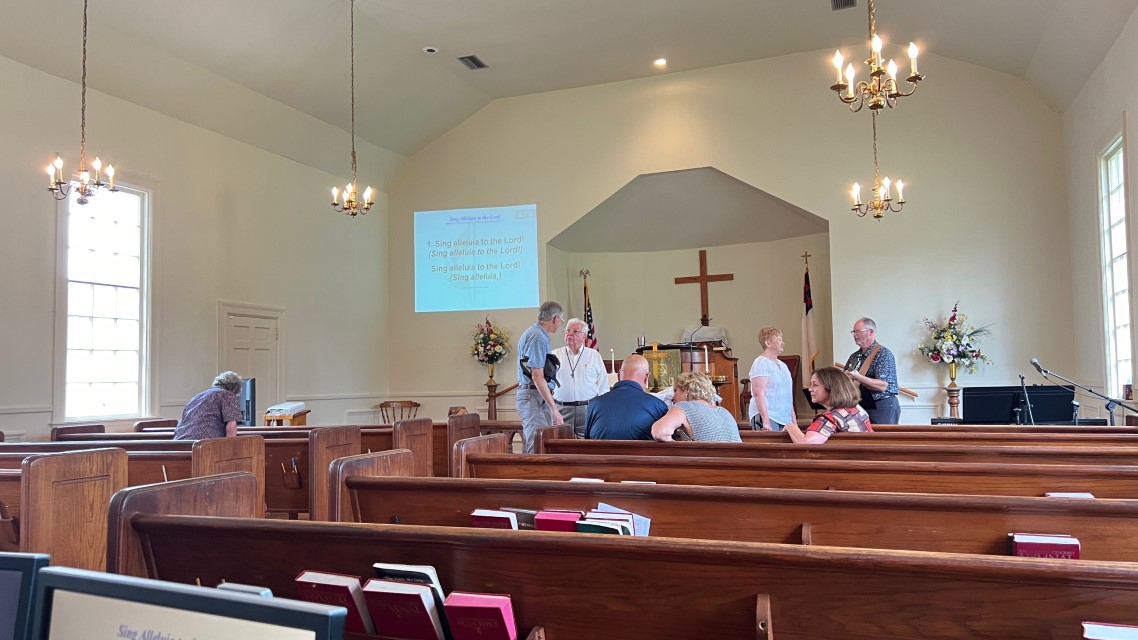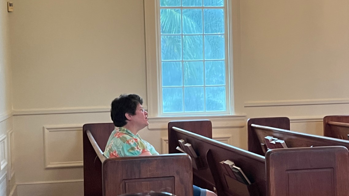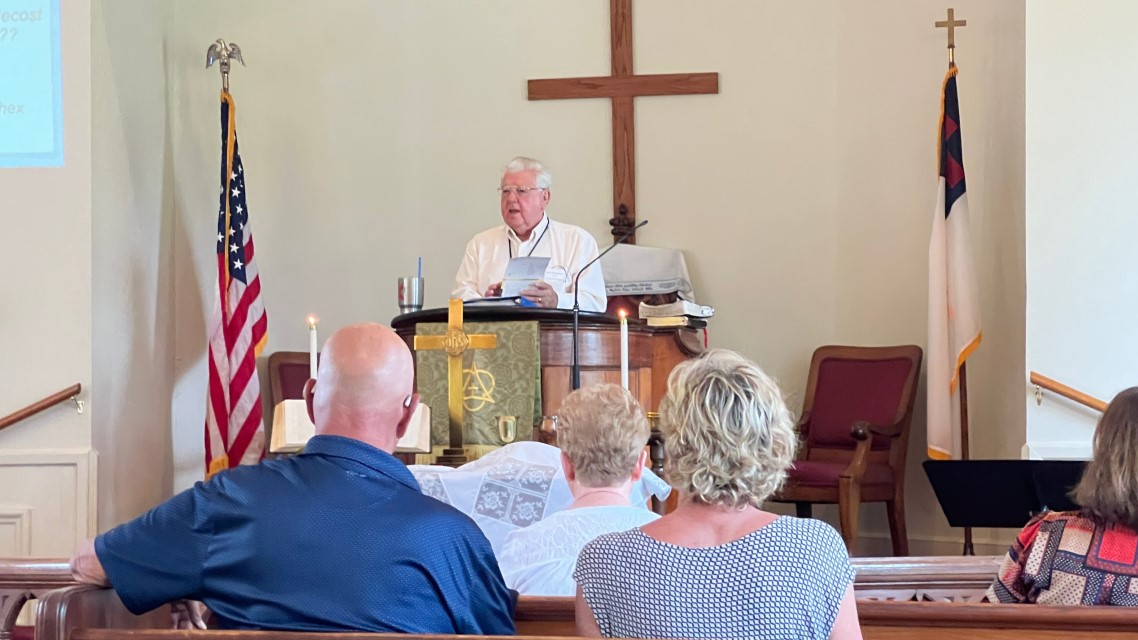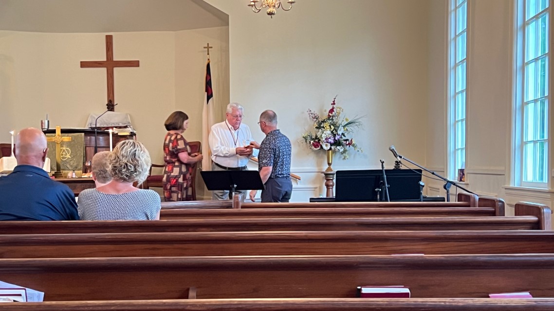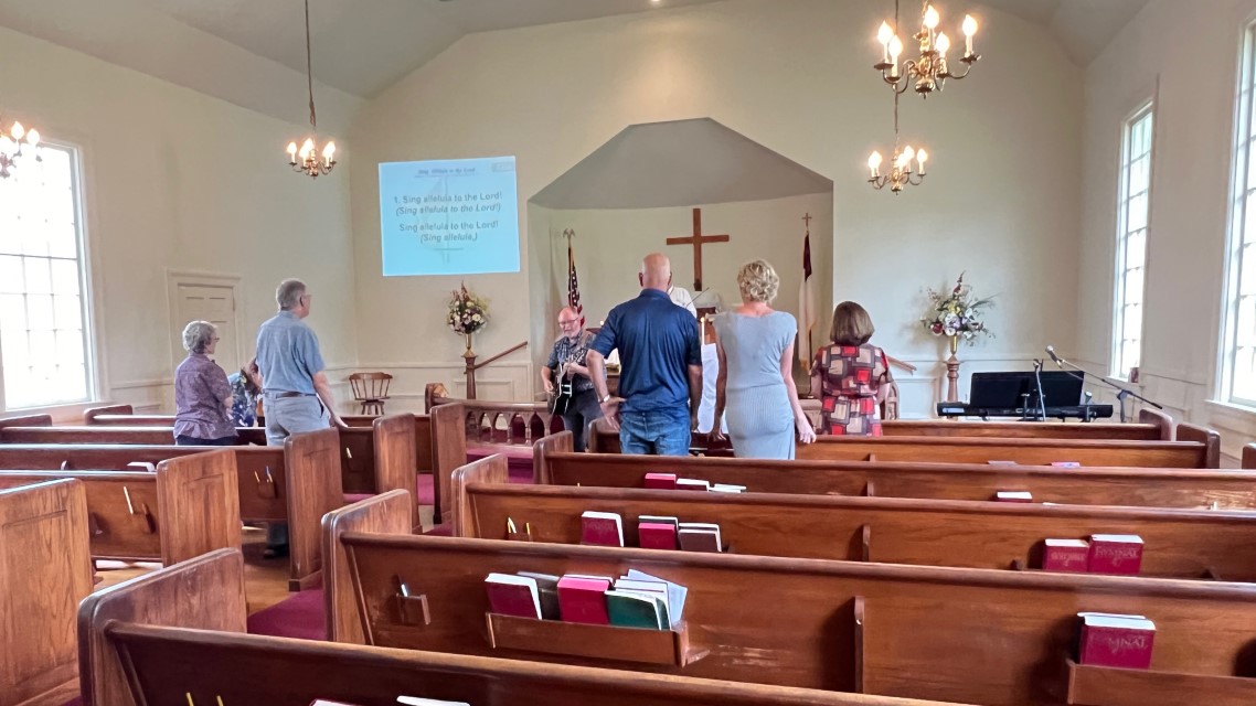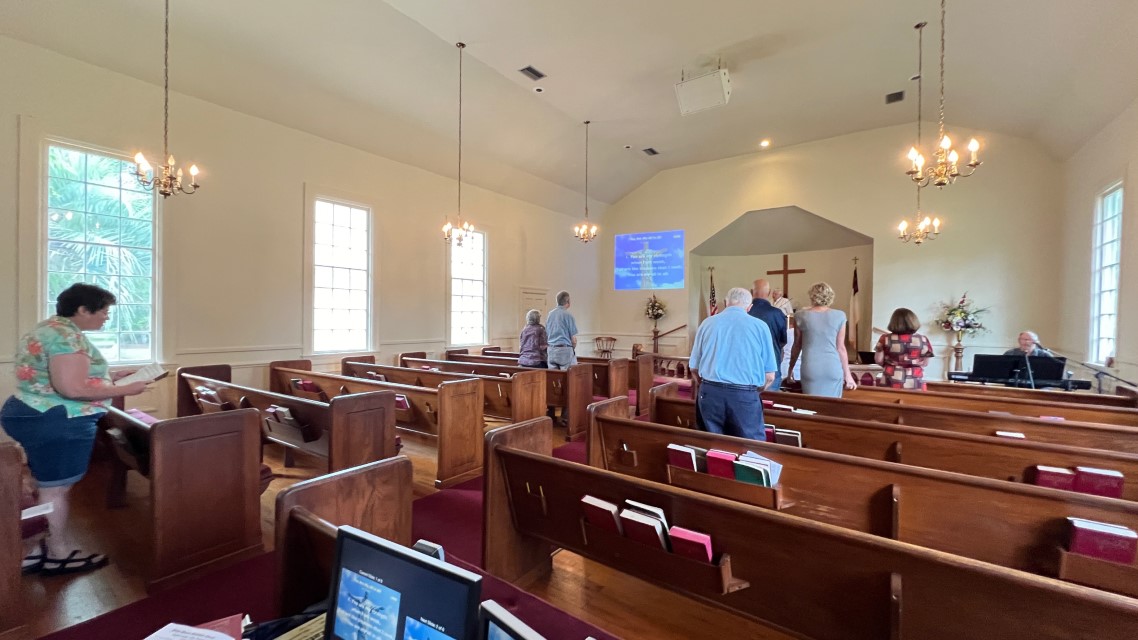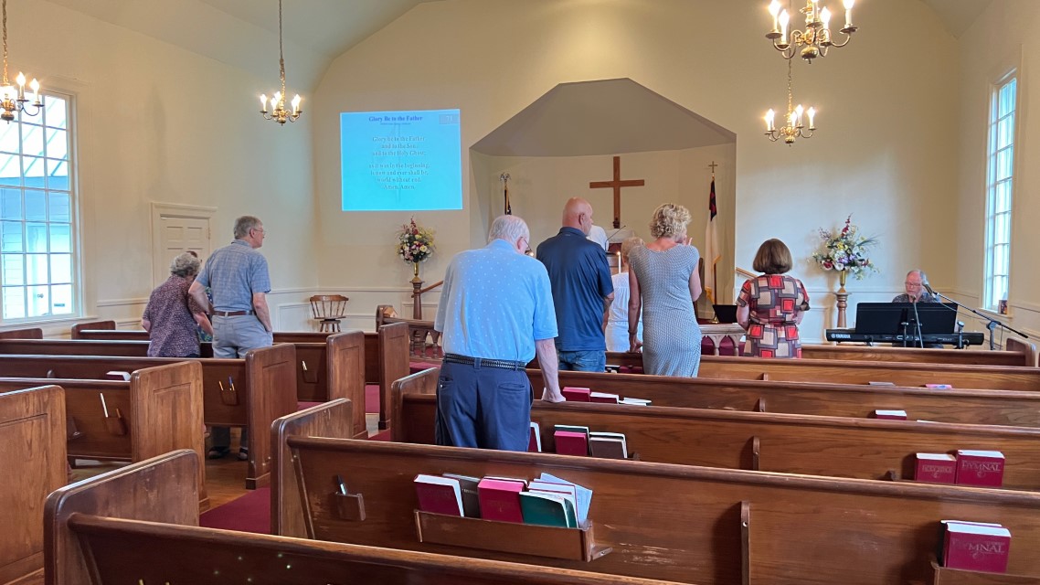 The service today began and ended under cloudy skies with a period of strong showers, thunder, lightning and two brief intervals of power loss during the service. As a result, the surviving recording of the service begins near the end of the time for prayer concerns. On this page, I've used recordings for the online service in place of ones from the church service that were lost.