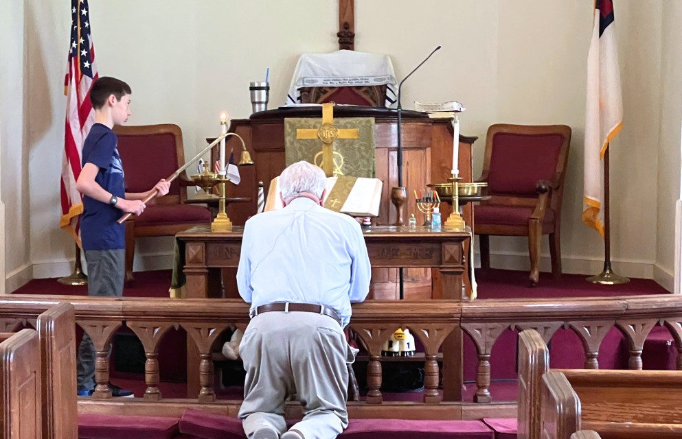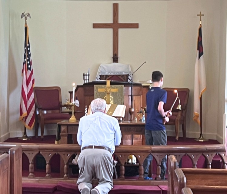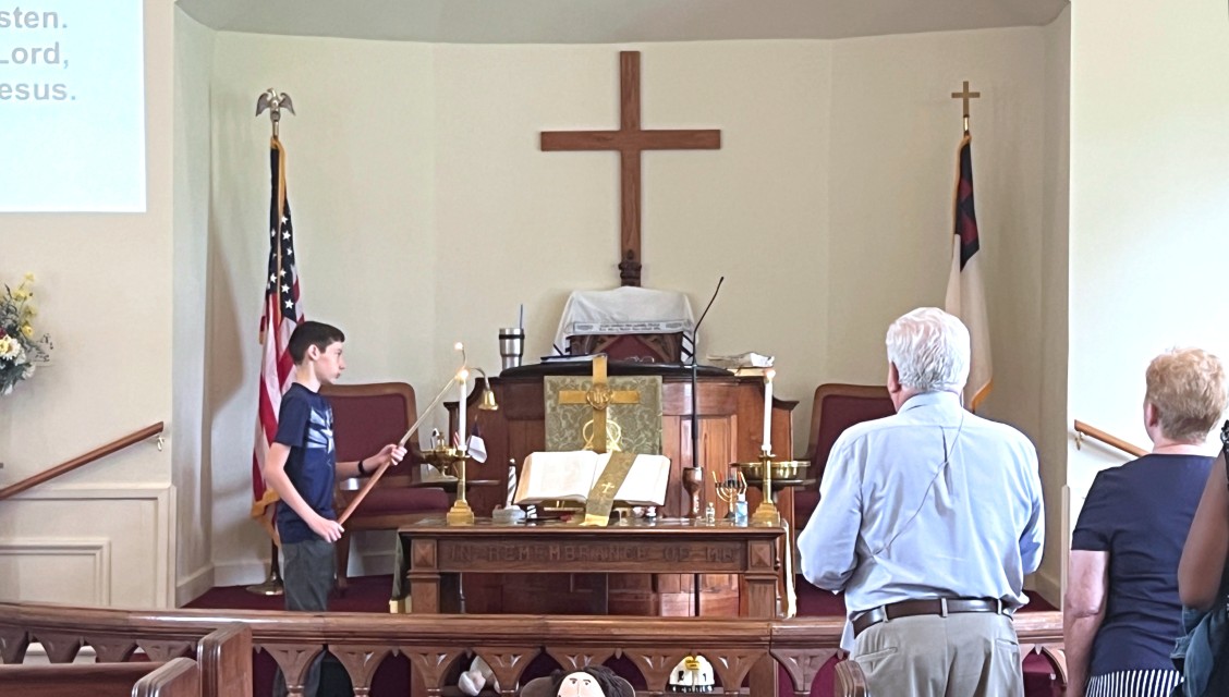 Arthur takes the light of Christ from the altar...