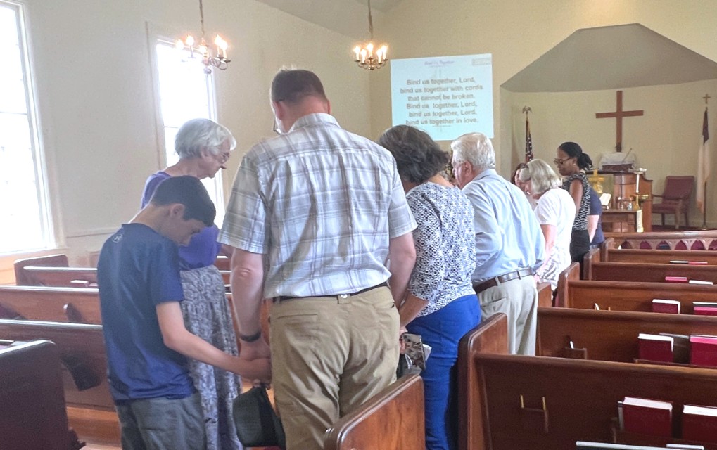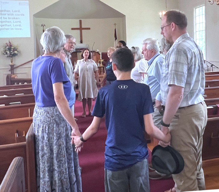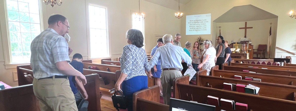 Gather in the center aisle....hold hands..."