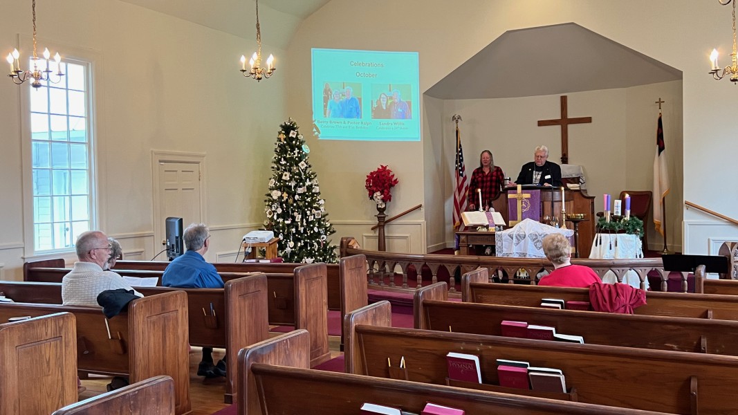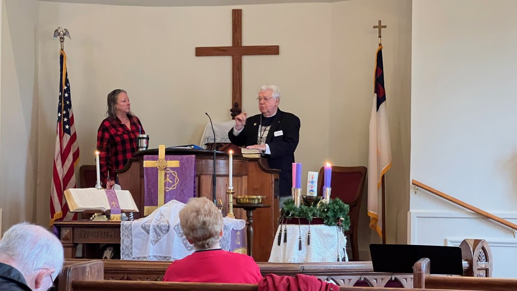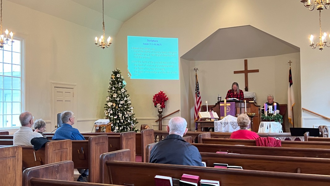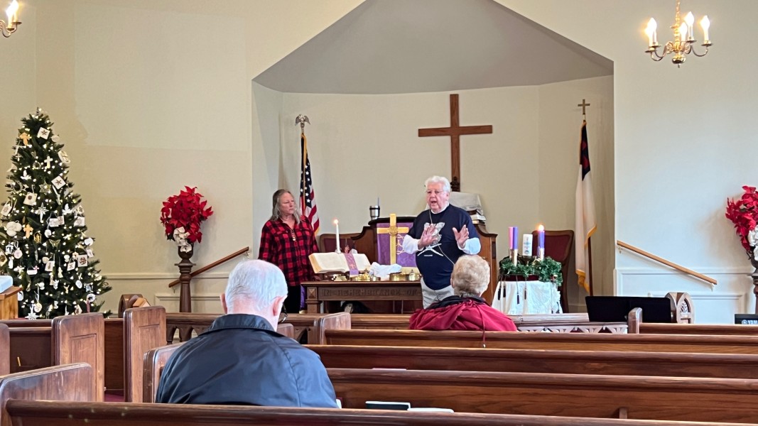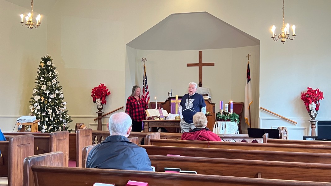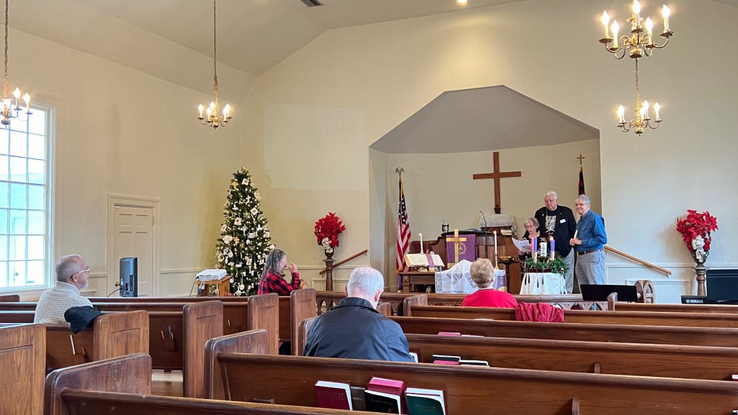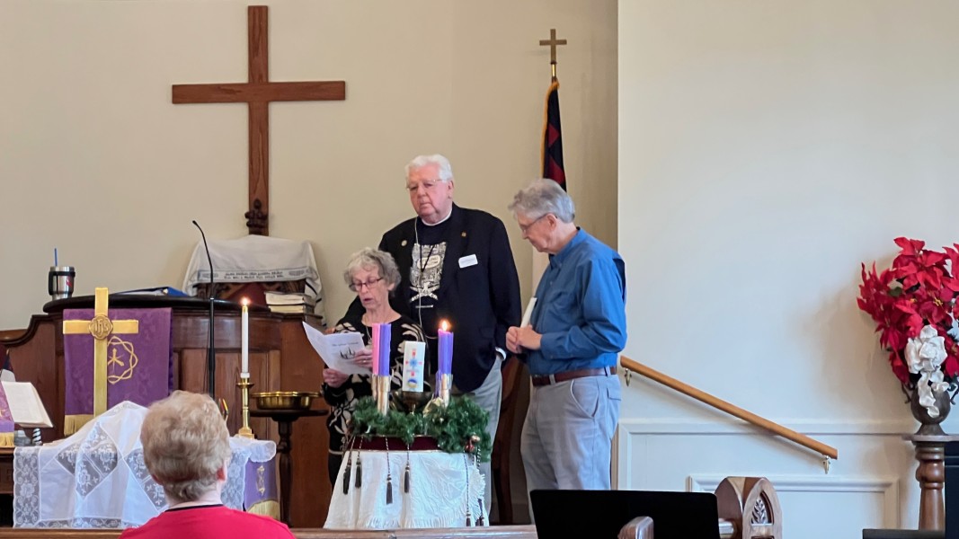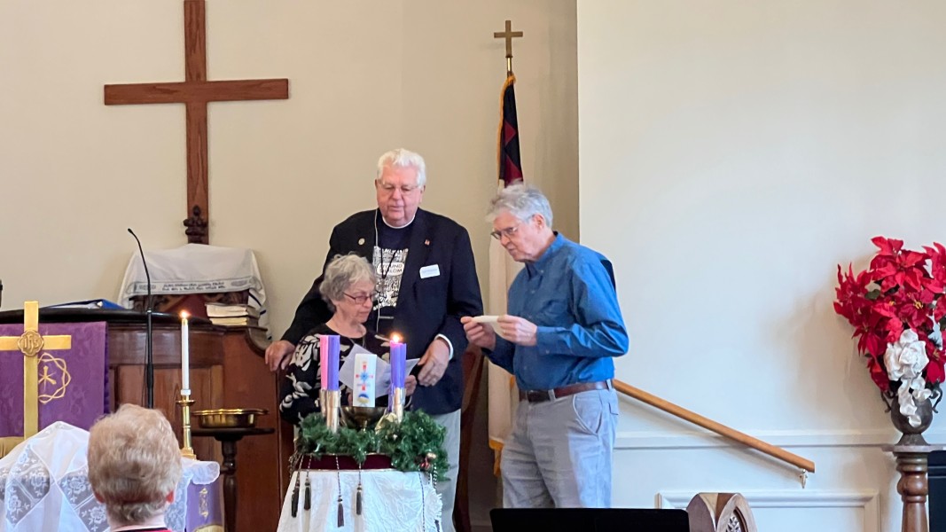 Linda Cisne and Dave Watson light the Second Advent candle.