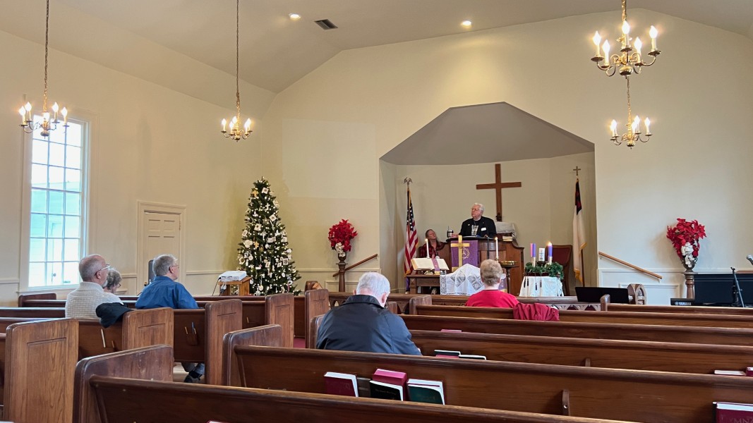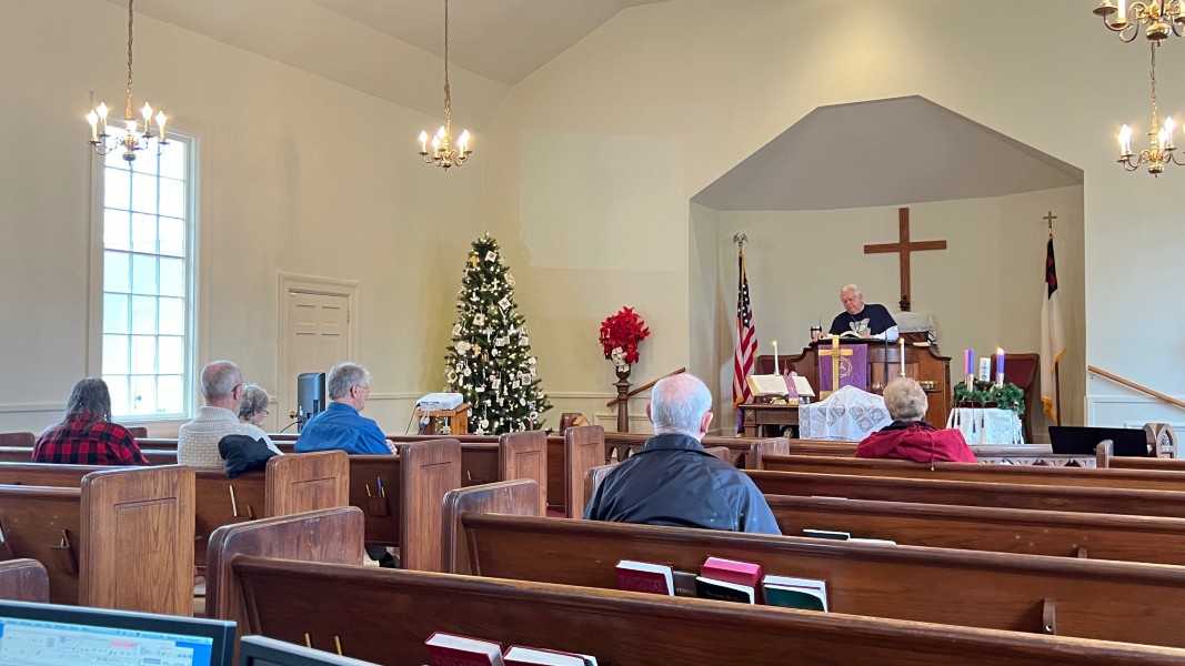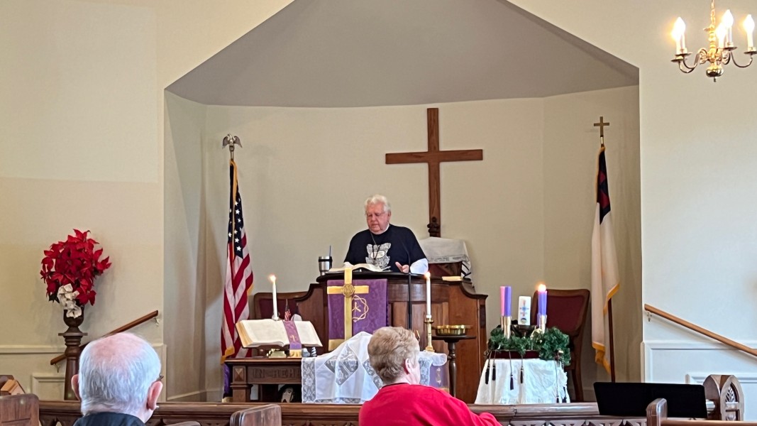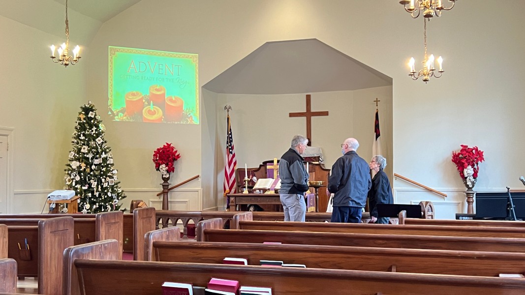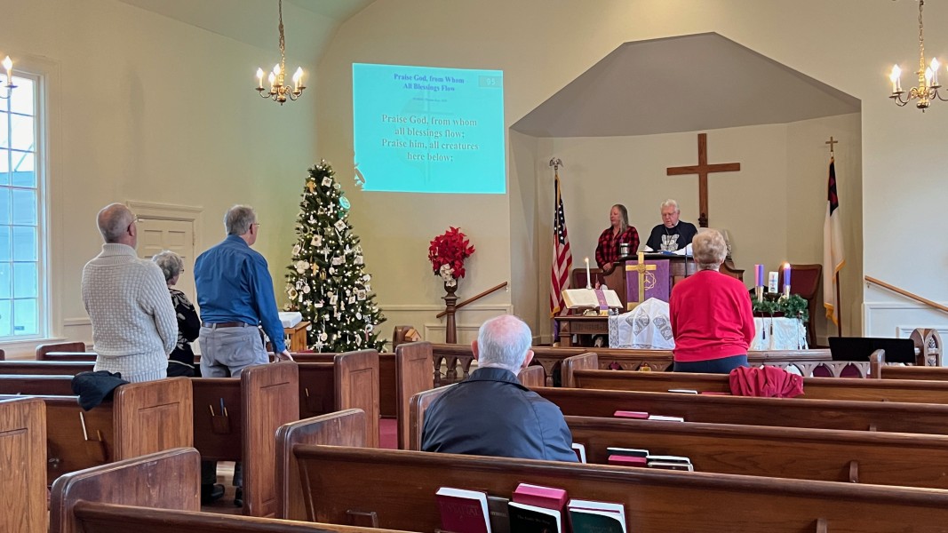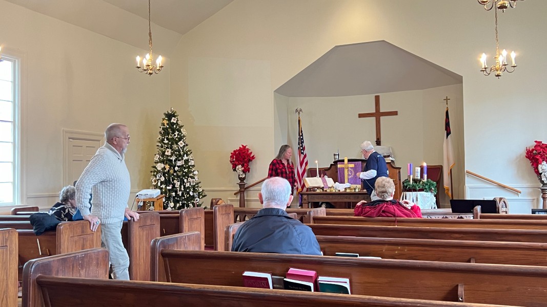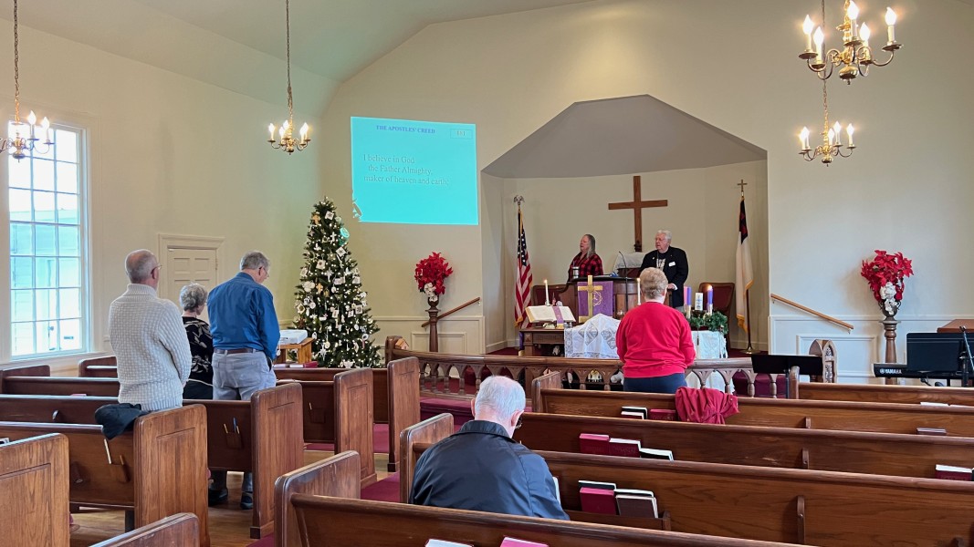 Linda Cisne and Dave Watson light the Second Advent candle.