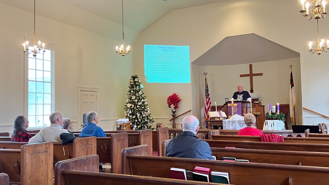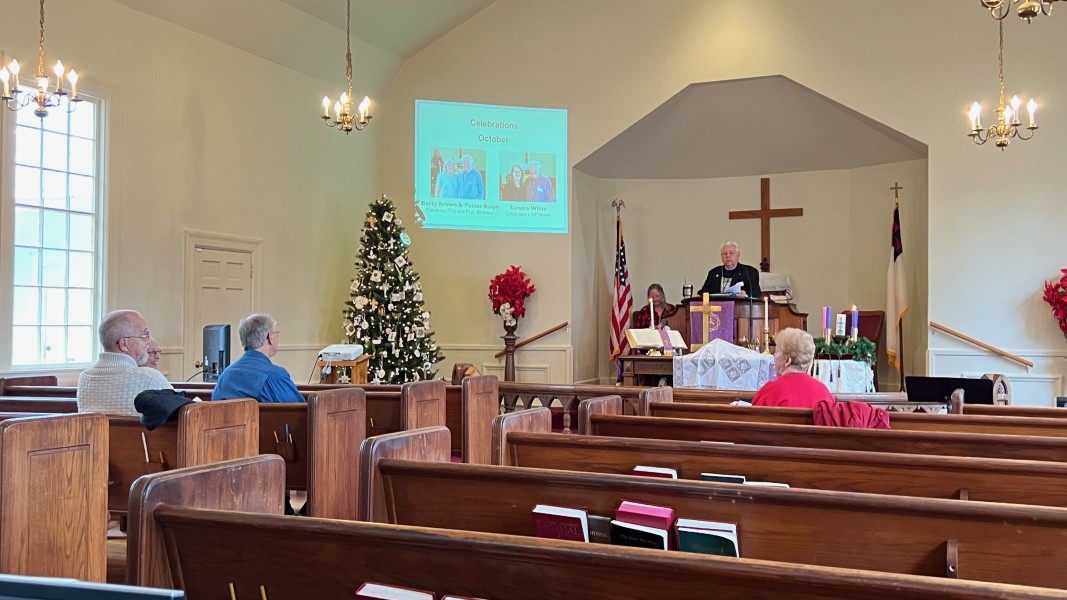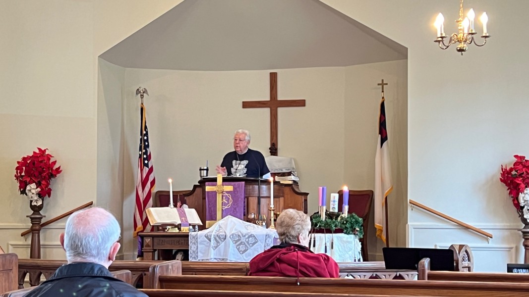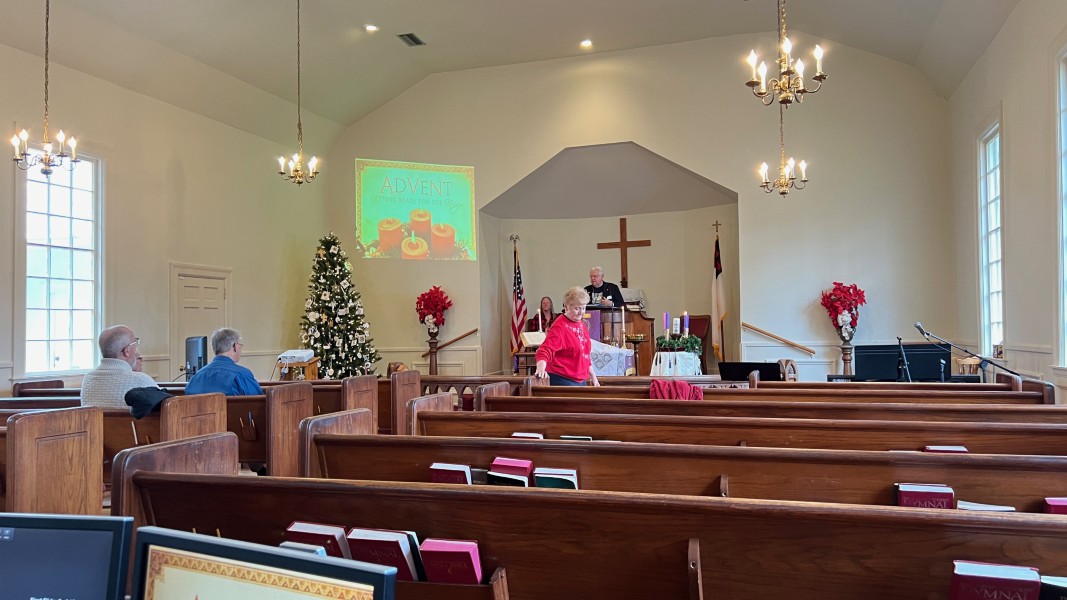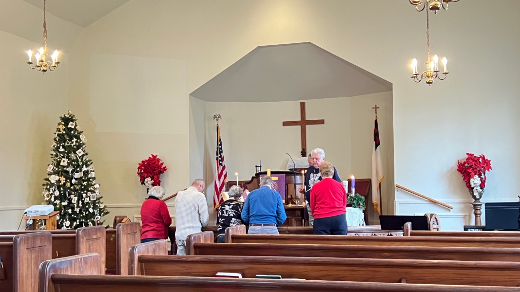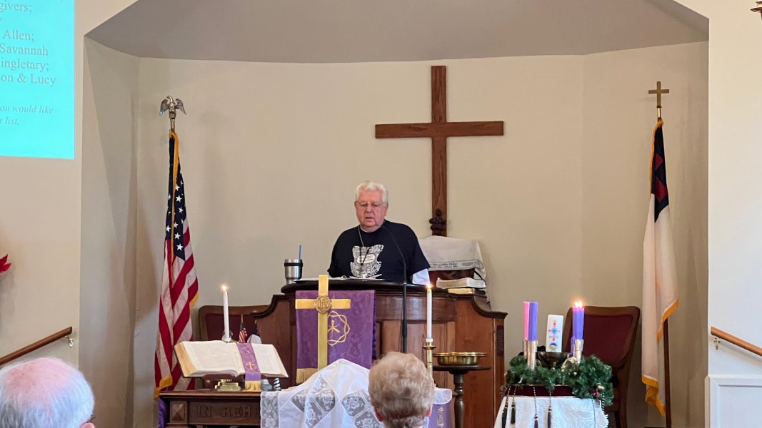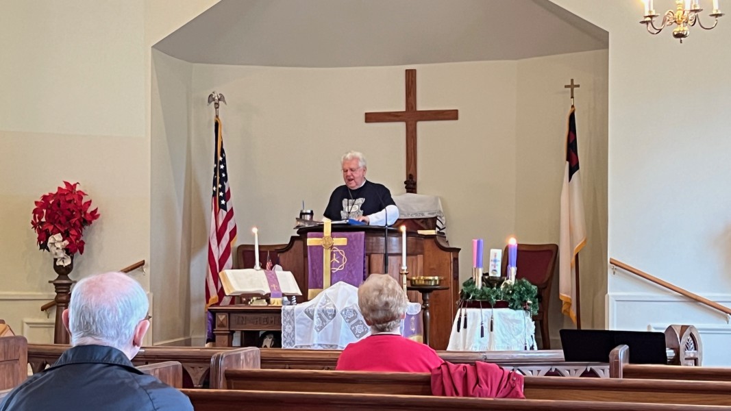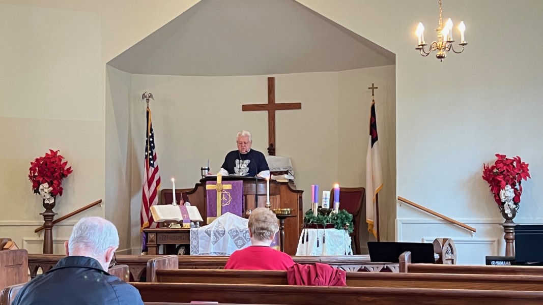 Linda Cisne and Dave Watson light the Second Advent candle.