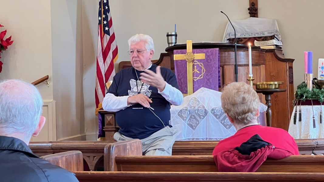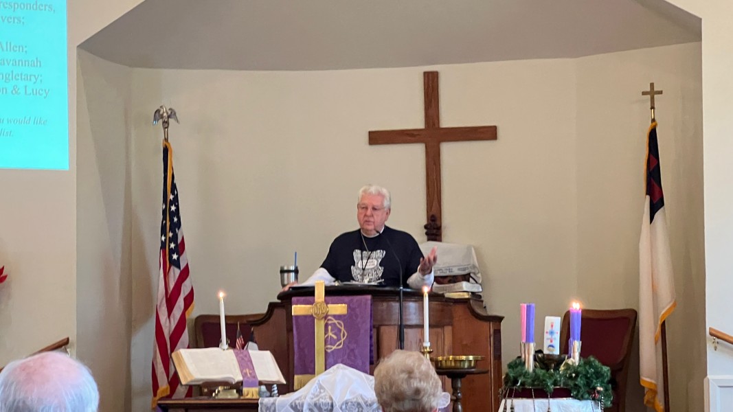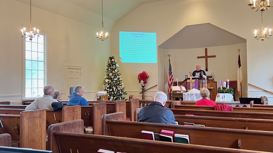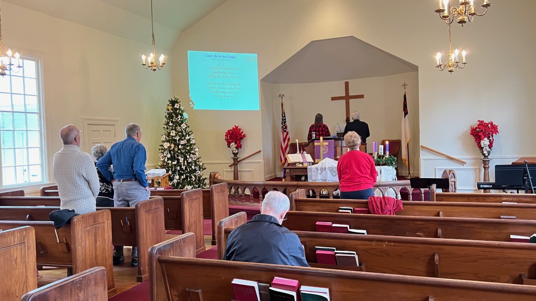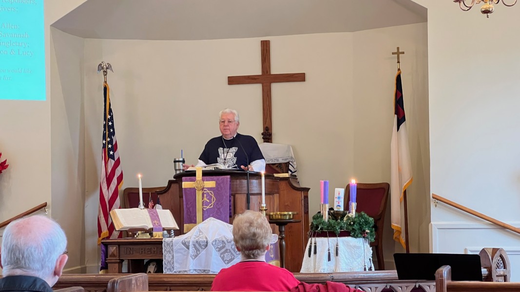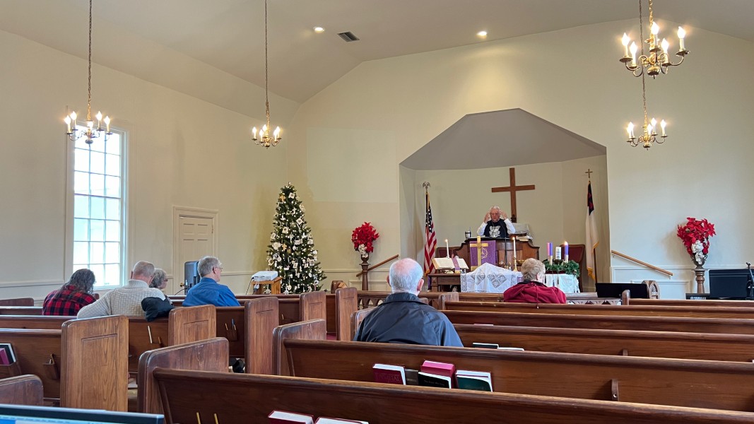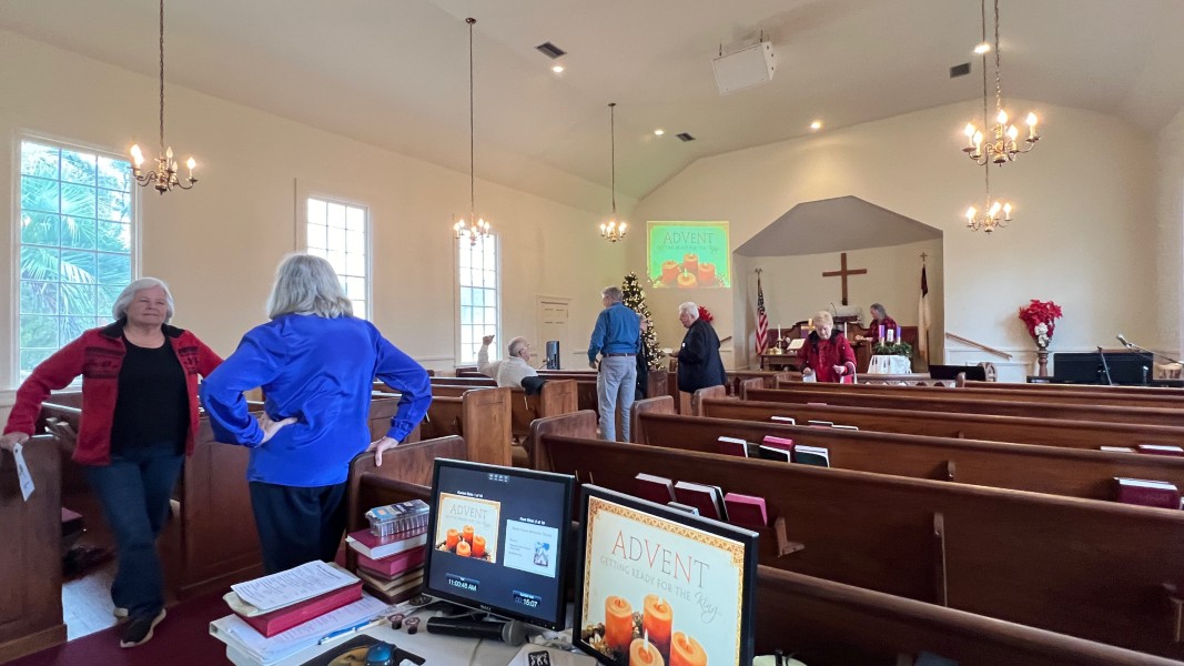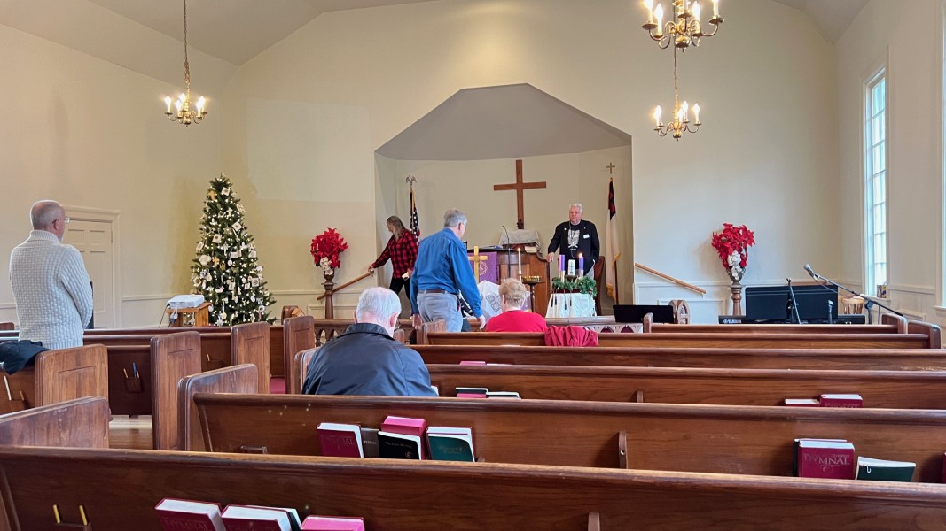 Linda Cisne and Dave Watson light the Second Advent candle.
