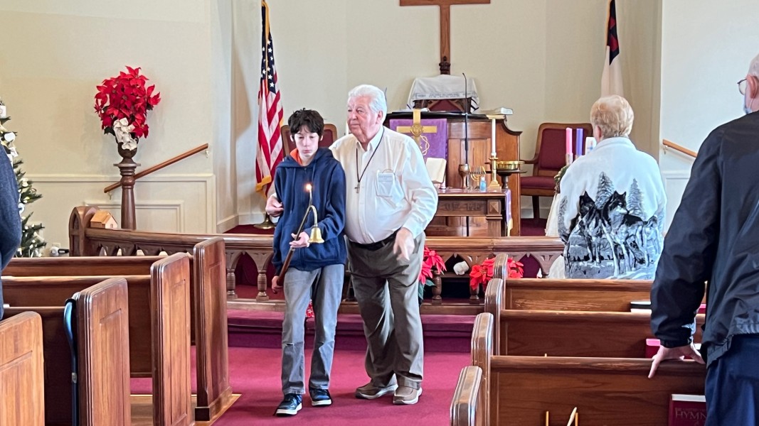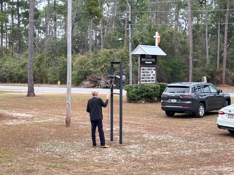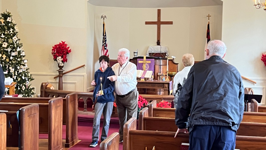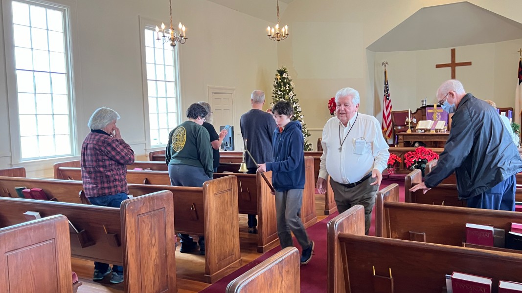 Mark rings the bell to announce the service