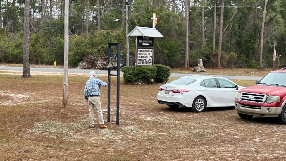 Mark rings the bell to announce the service