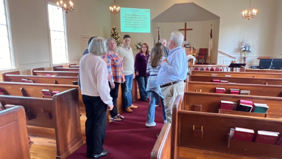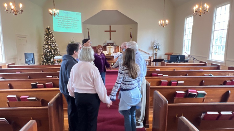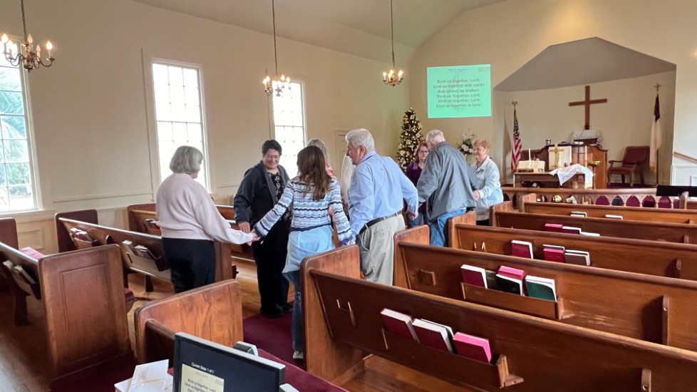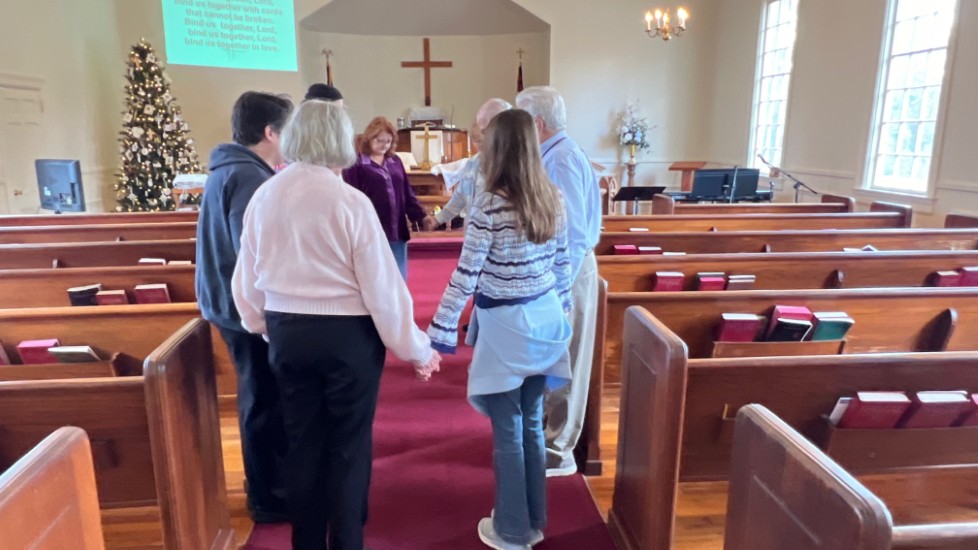 Gather in center aisle...join hands...