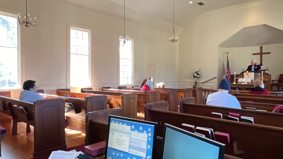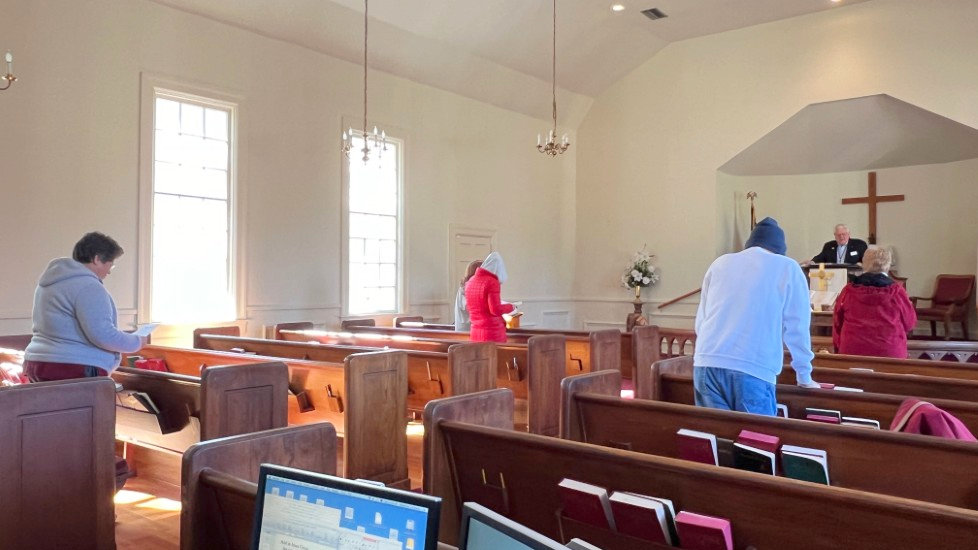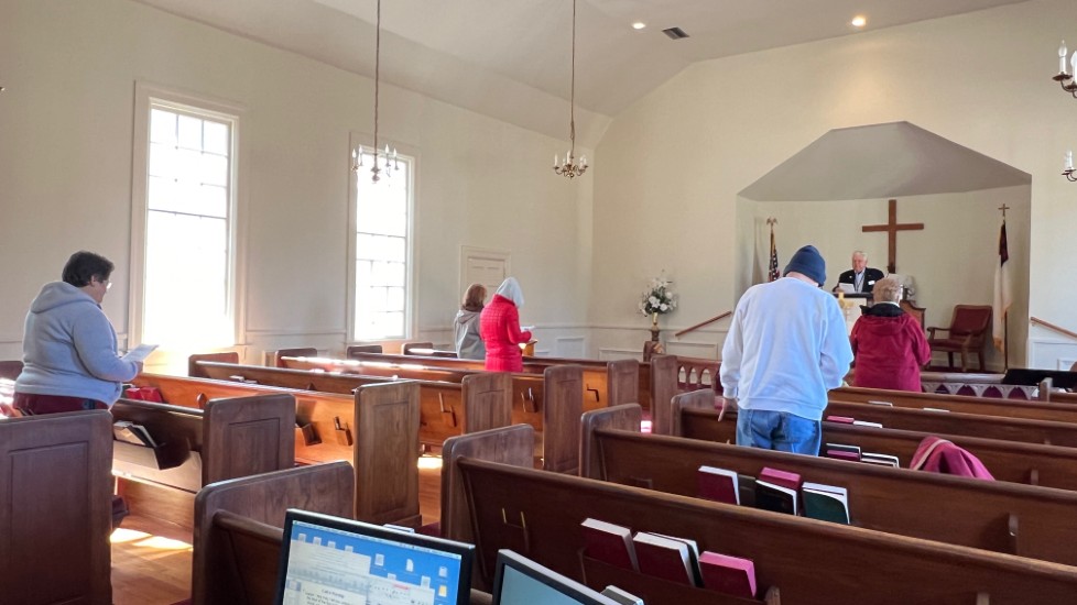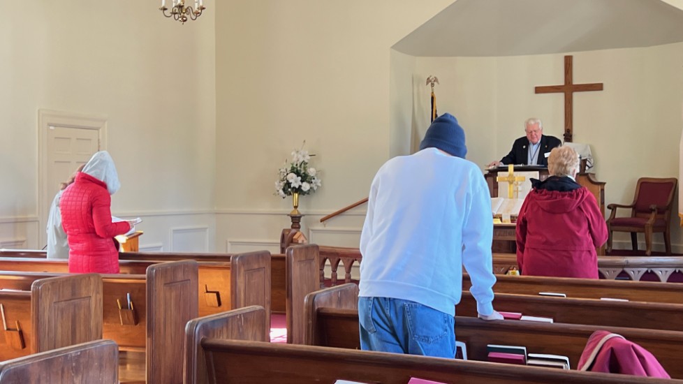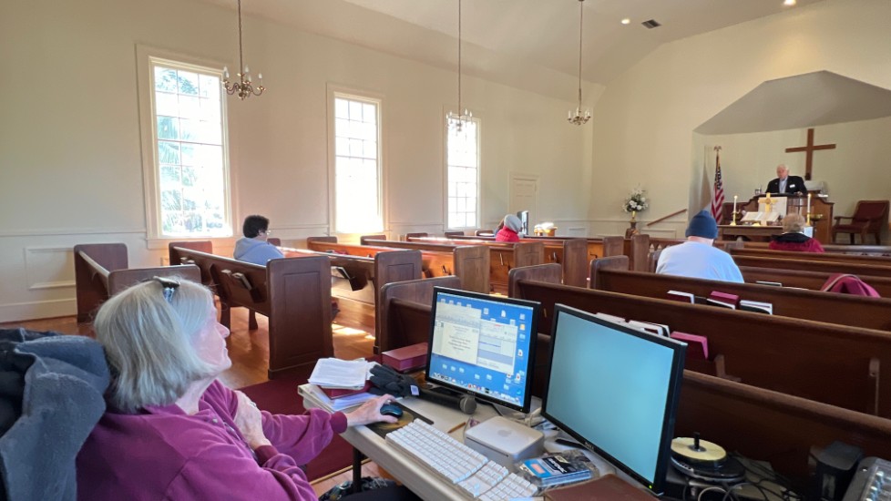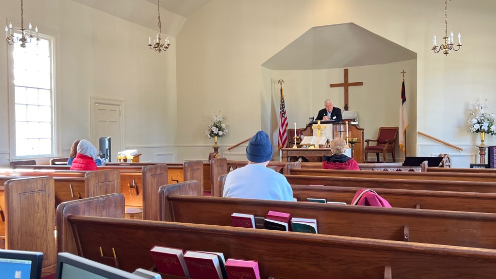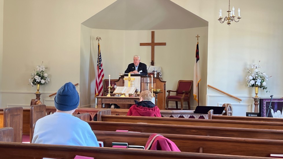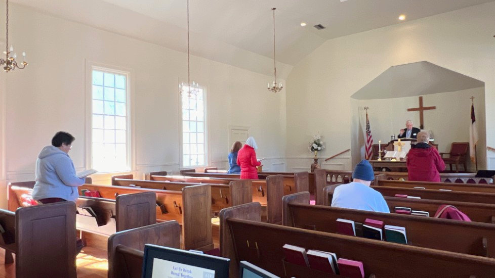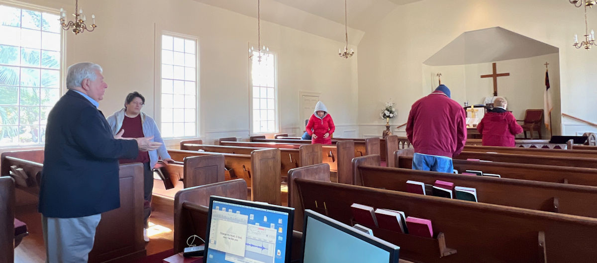 On this day, Tallahassee was in the middle of a cold spell that brought temperatures in the low 20's on Saturday and Sunday. The power went off at the church Saturday afternoon for several hours but was restored allowing the temperature inside to be 68 degrees for the service. A problem with the projection system required returning to using the bulletin, hymnals...and memory...for responses and hymn verses.