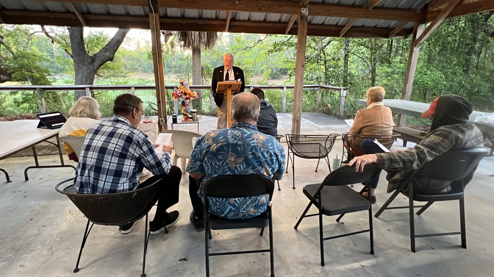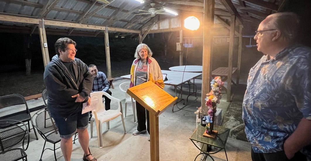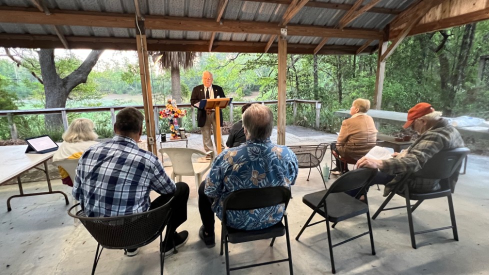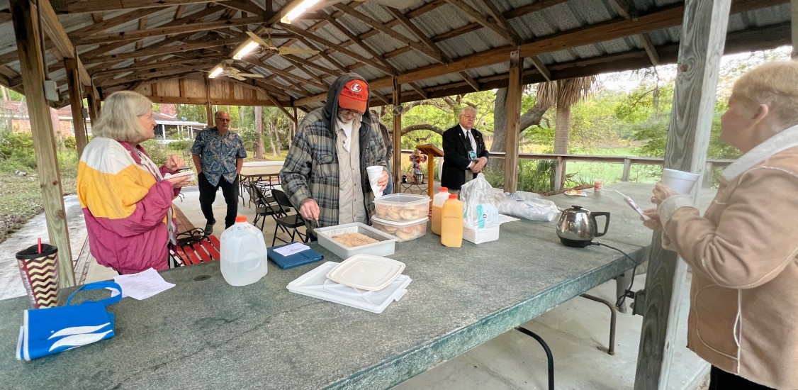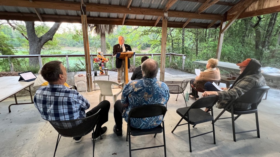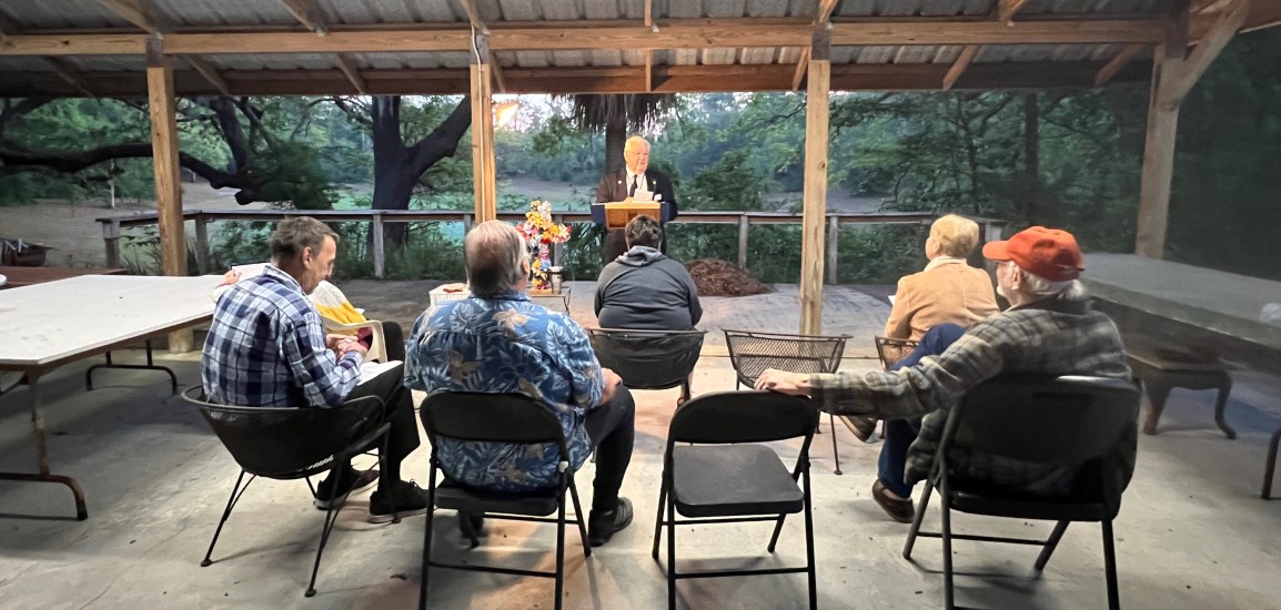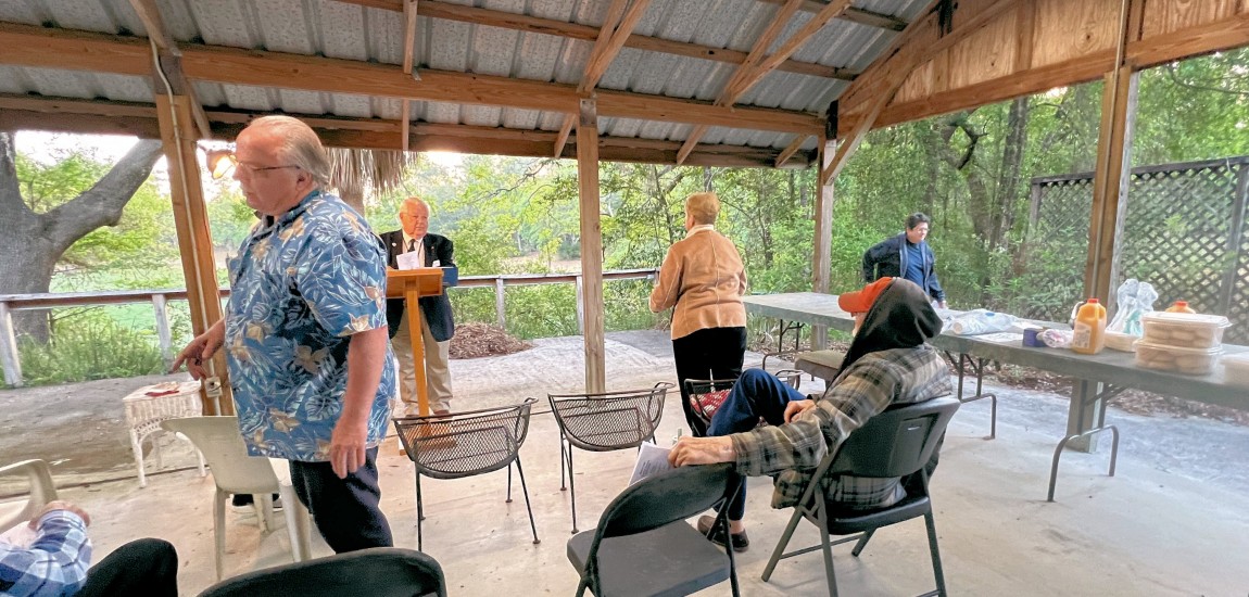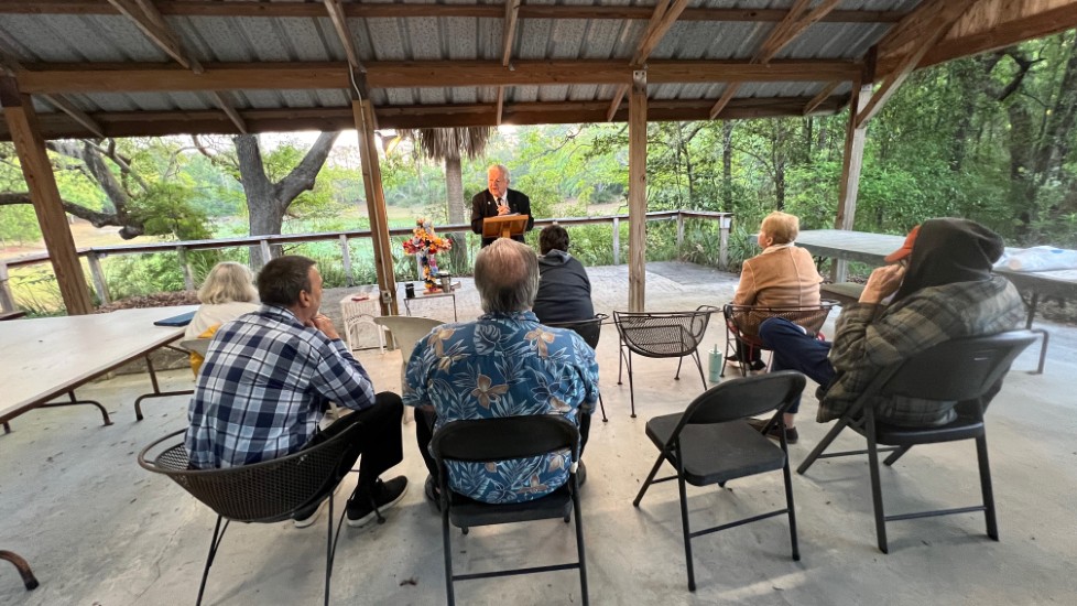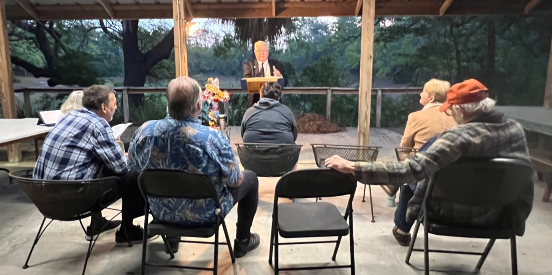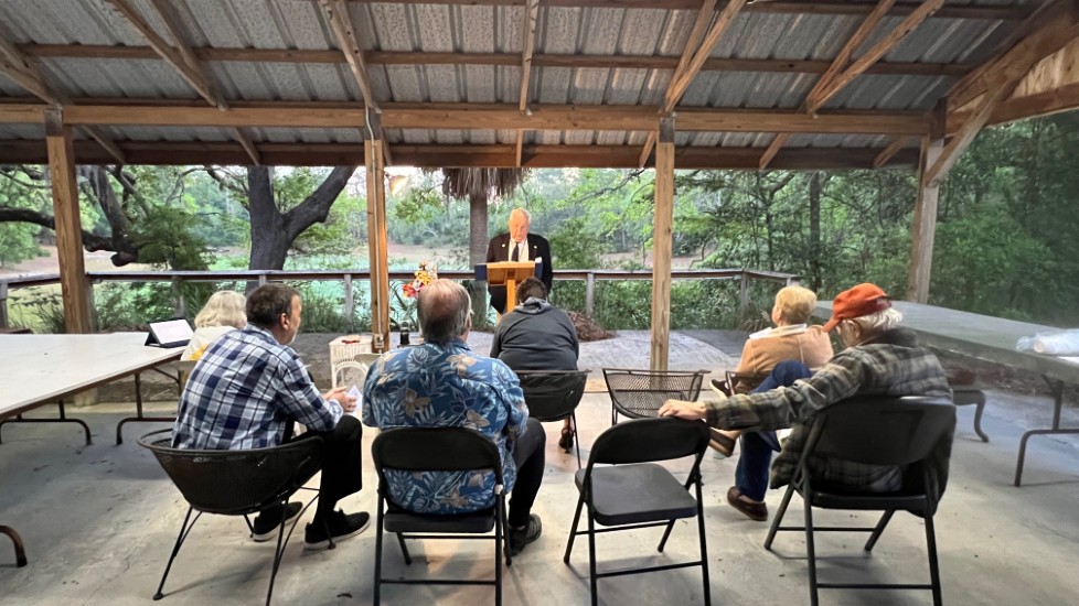 Don Singletary greets surprise visitors, Martin Hamblin, friend of
